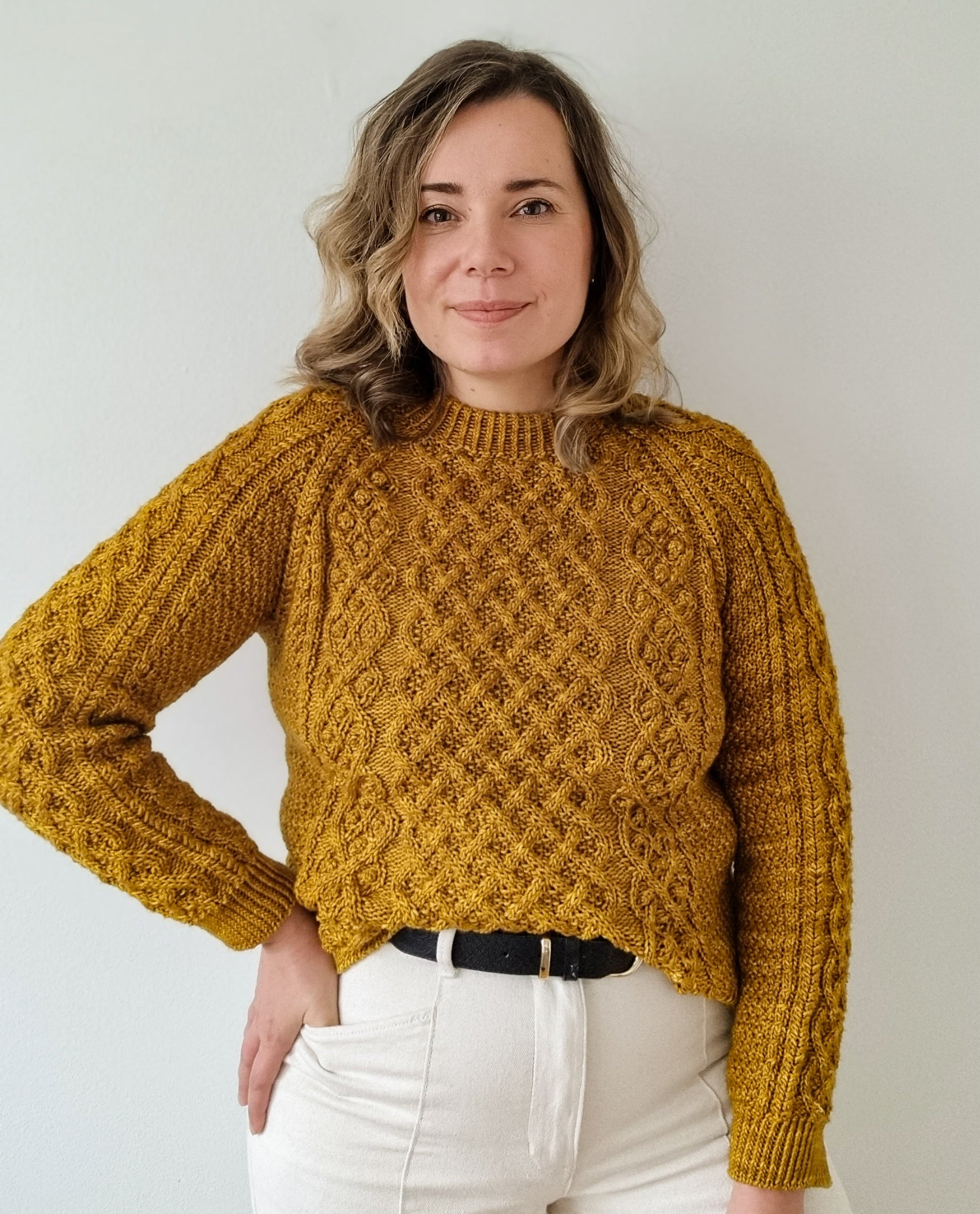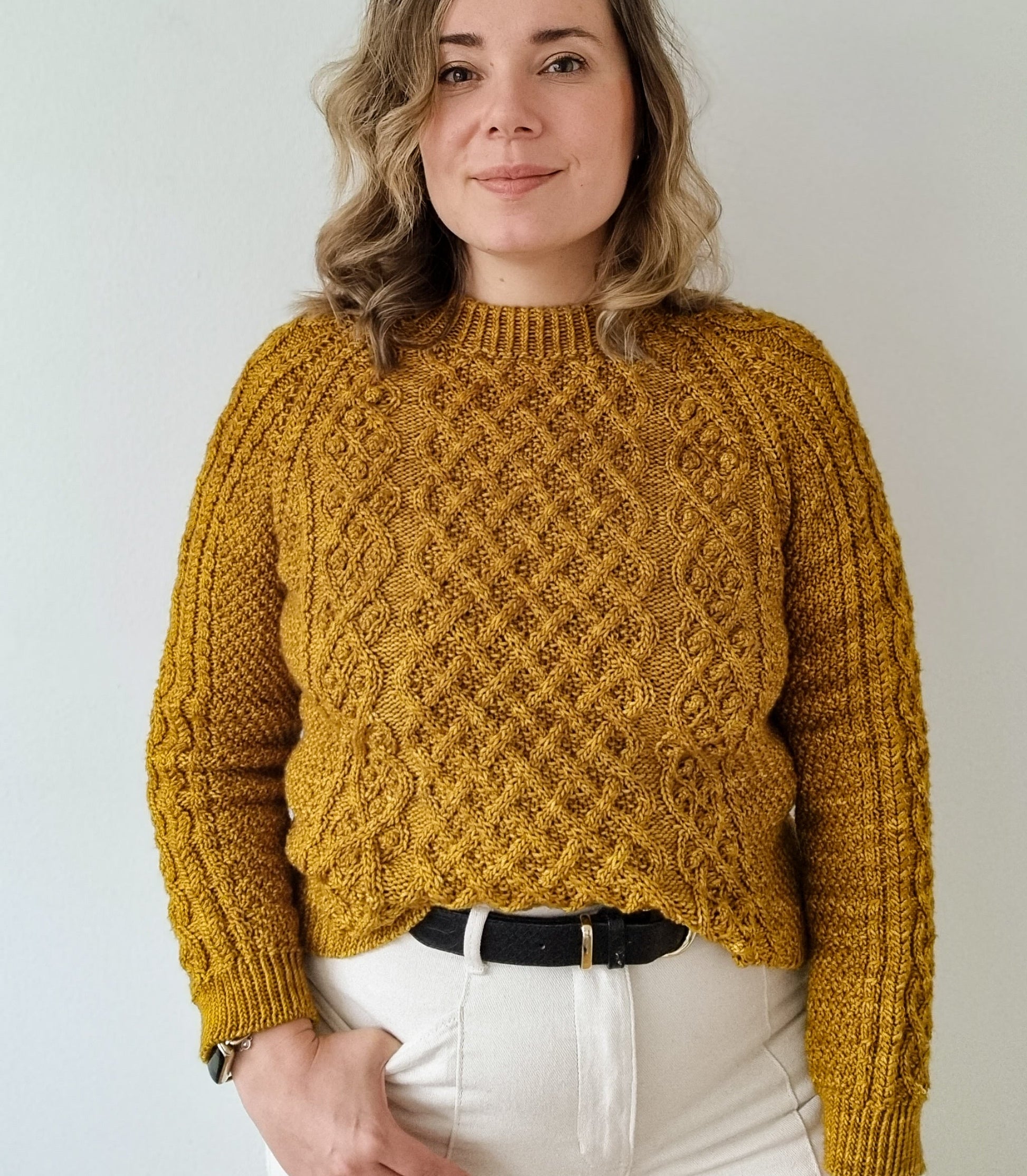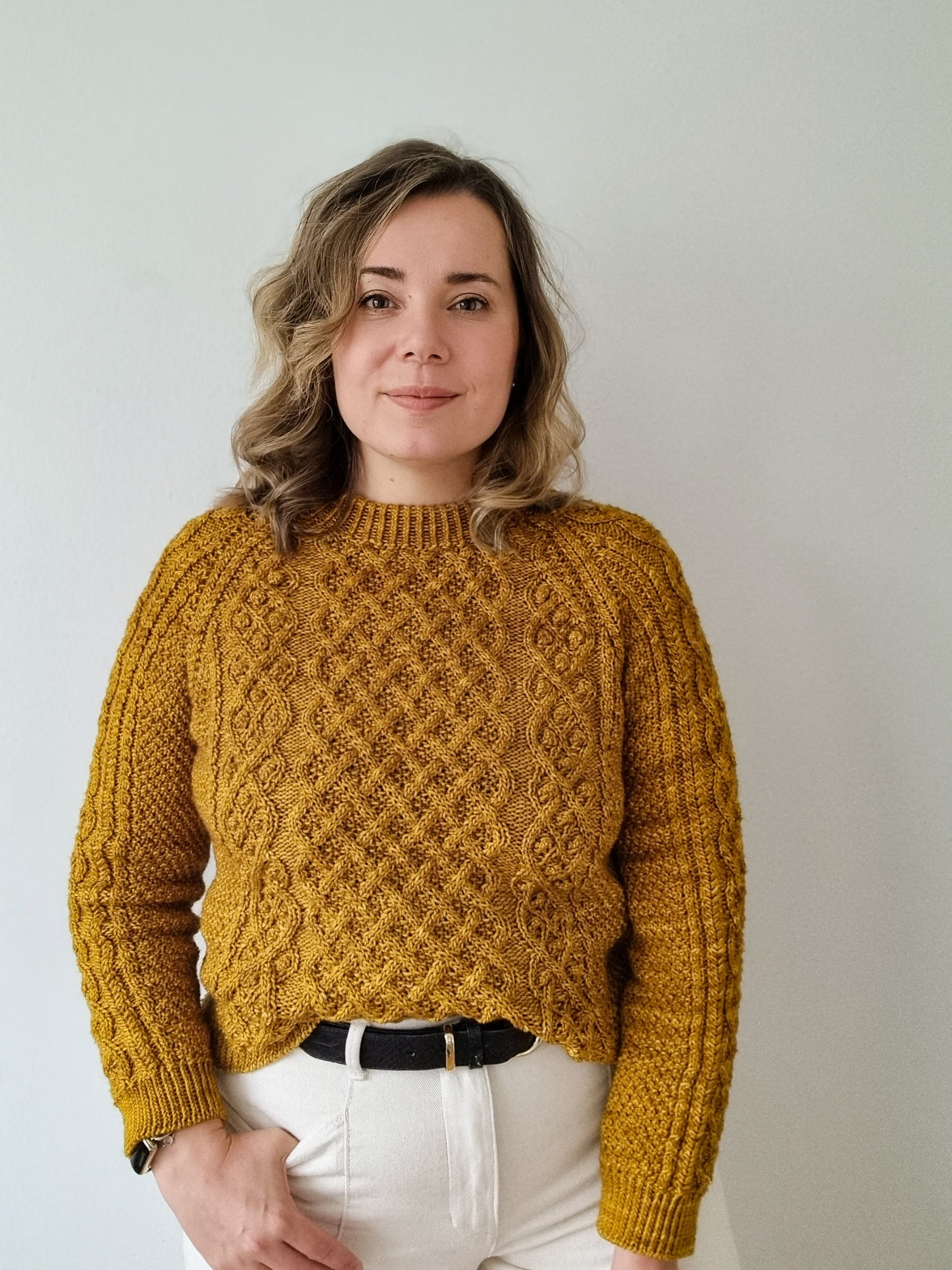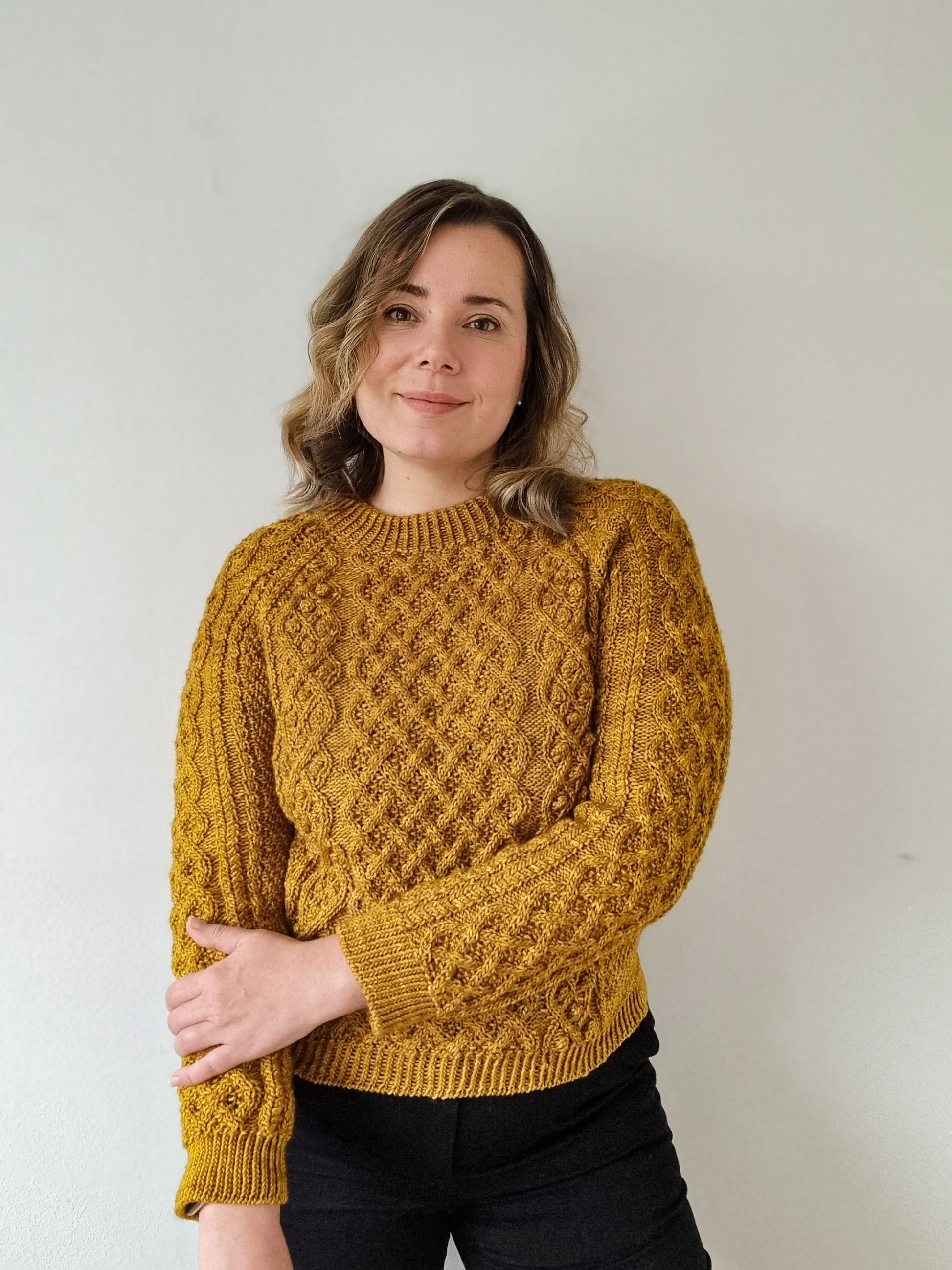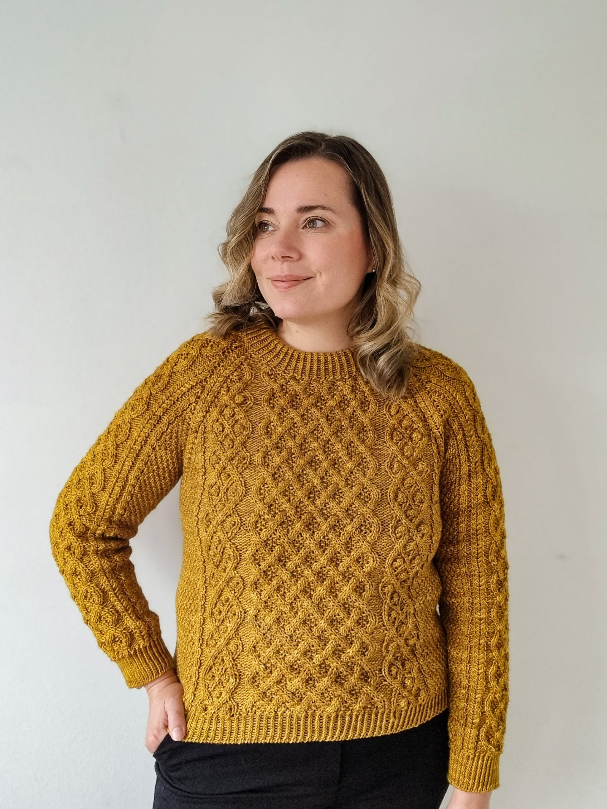 The Aurelia pullover is knitted seamlessly top-down starting at the neckline. The cable pattern is easy to memorize and raglan increases over the cable pattern are charted. The sleeves and body are separated at the underarm and knitted separately. Lastly the neckband is picked up from the body and knitted in the round.