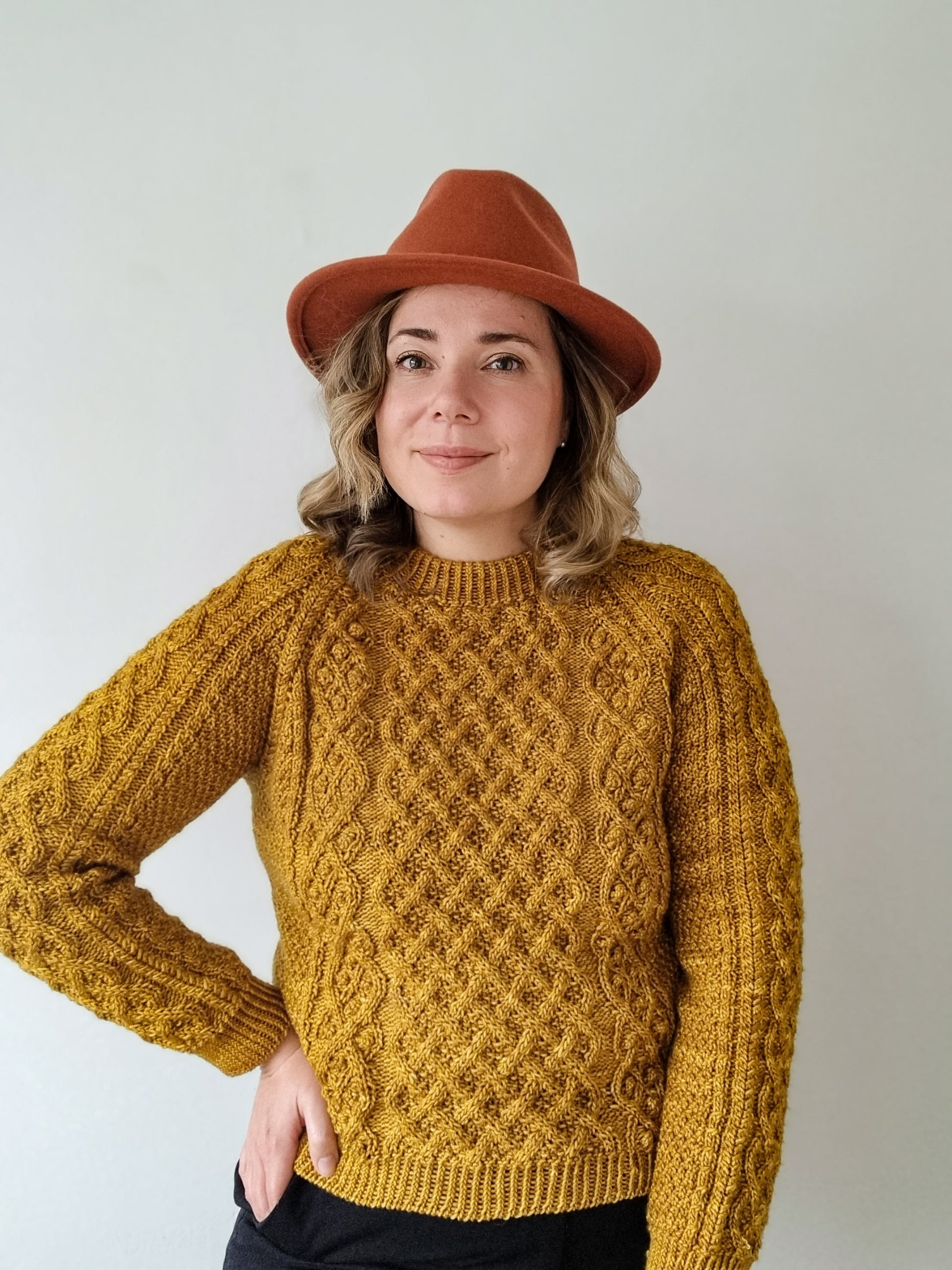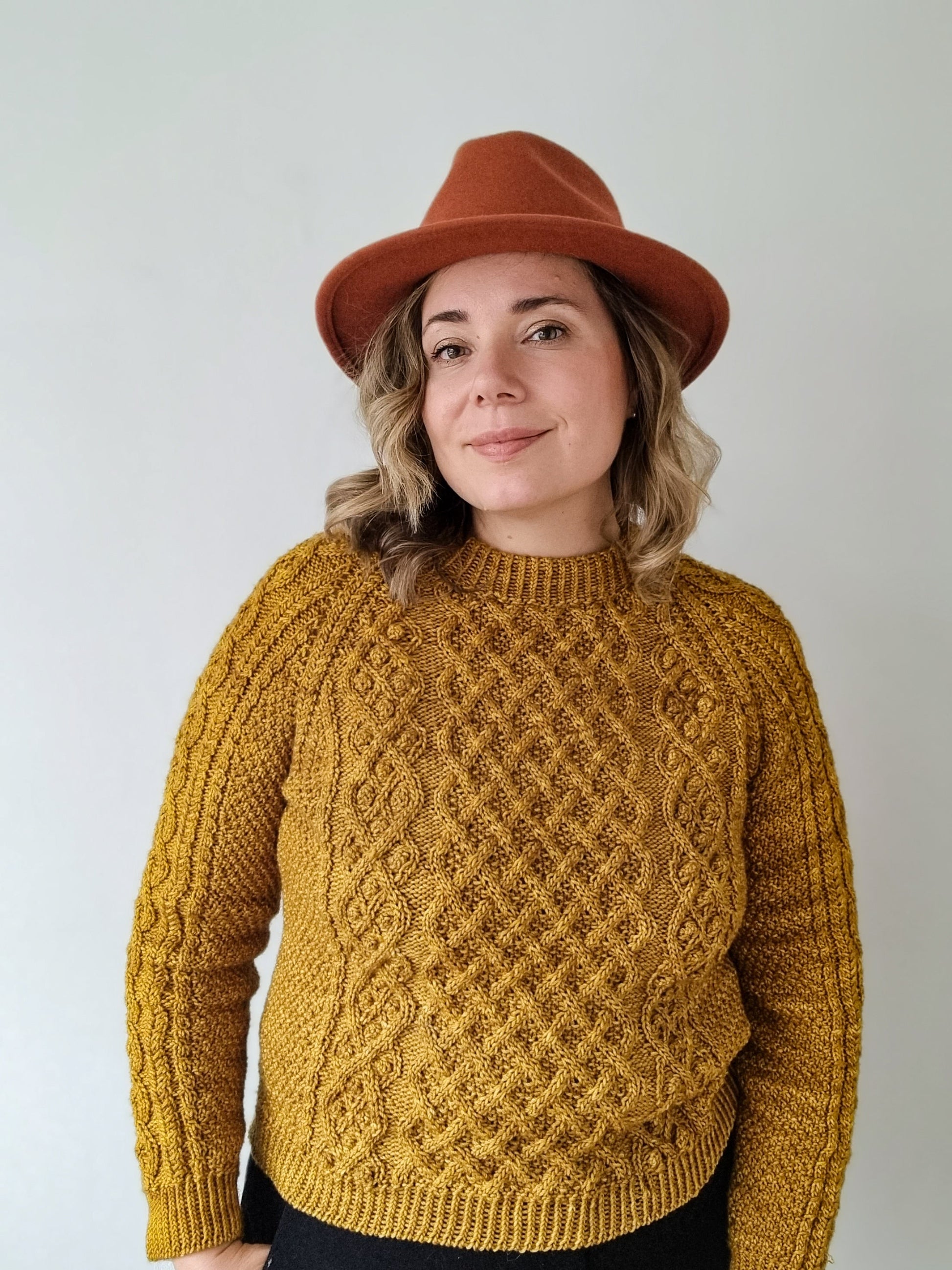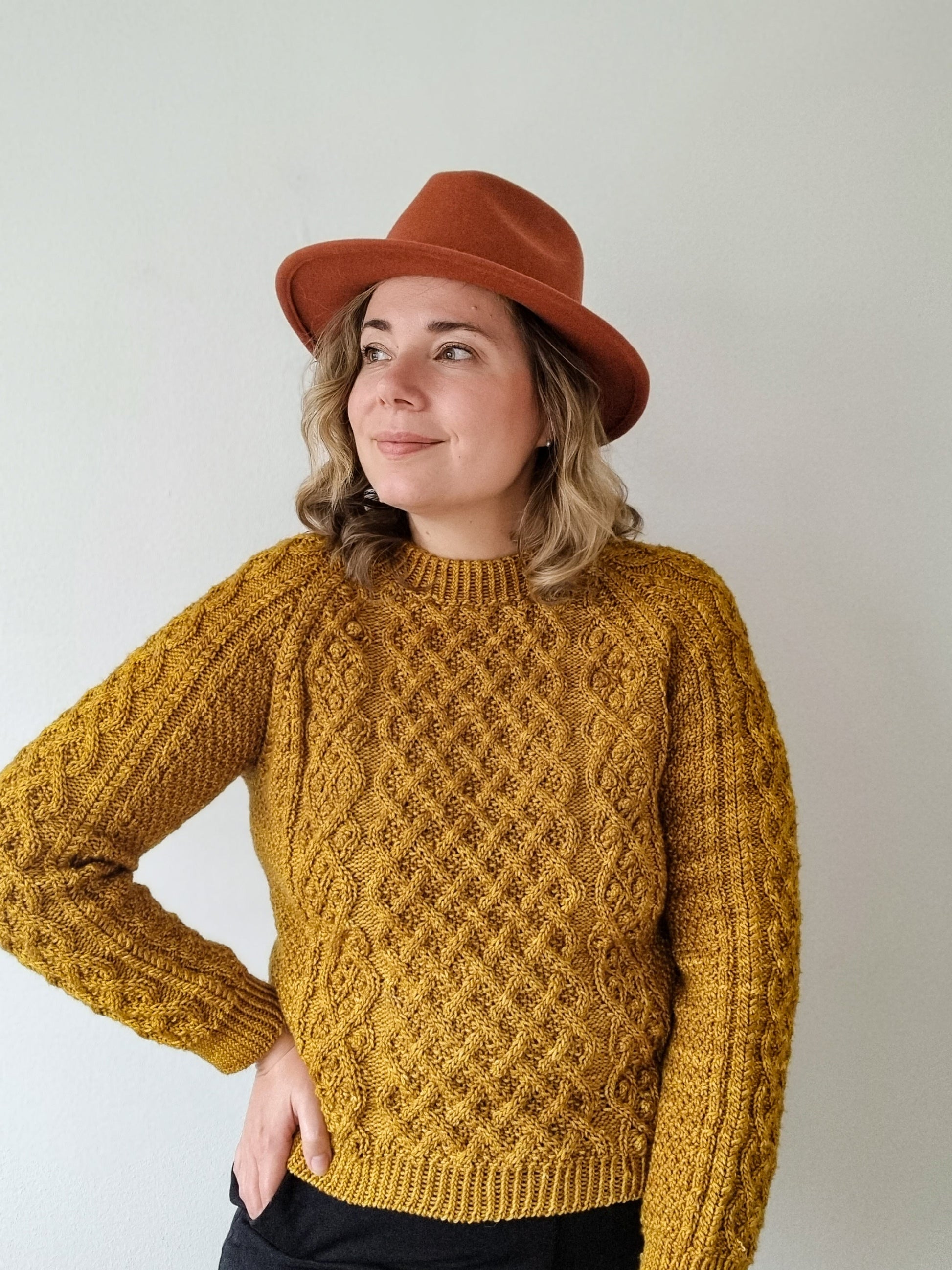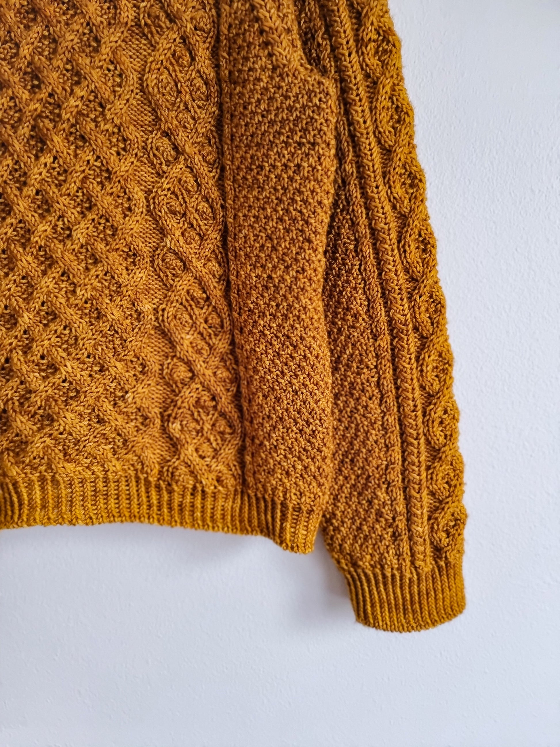 22 sts and 24 rounds = 10 cm / 4 inches in Main cable pattern on larger needles, after blocking