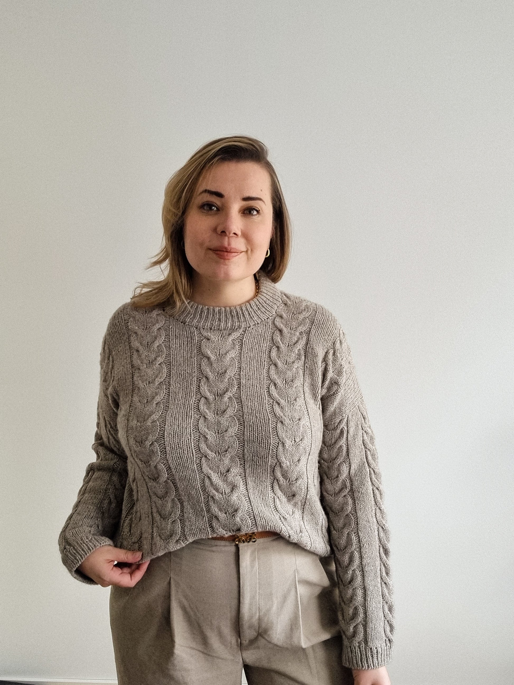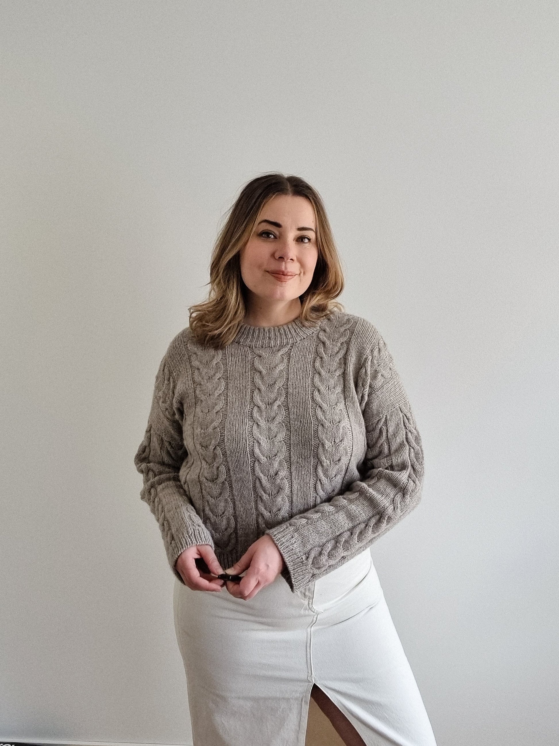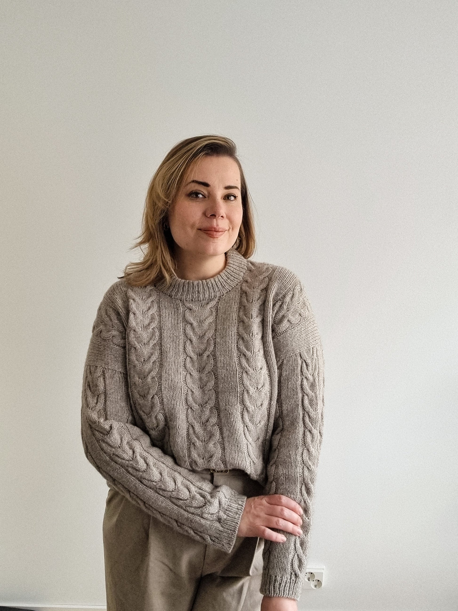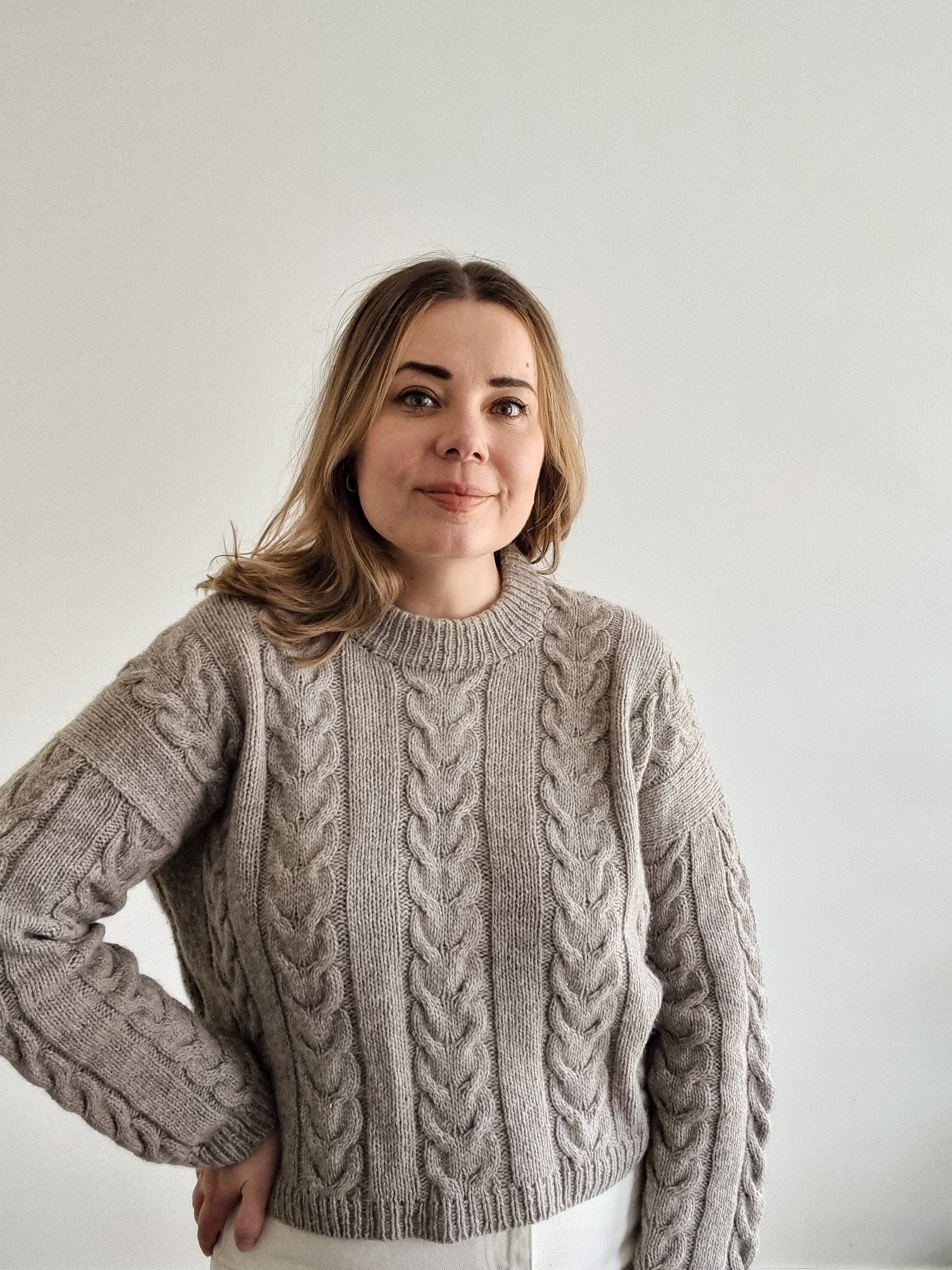 The length of the body and sleeves are easily modified to suit your own body measurements. I recommend trying the sweater on every now and then while working on it to make sure you get the perfect length for your style. Note: You can easily modify the body shorter for a cropped look. For a cropped sweater I would only work 15-20 cm / 6-8 inches for the body.