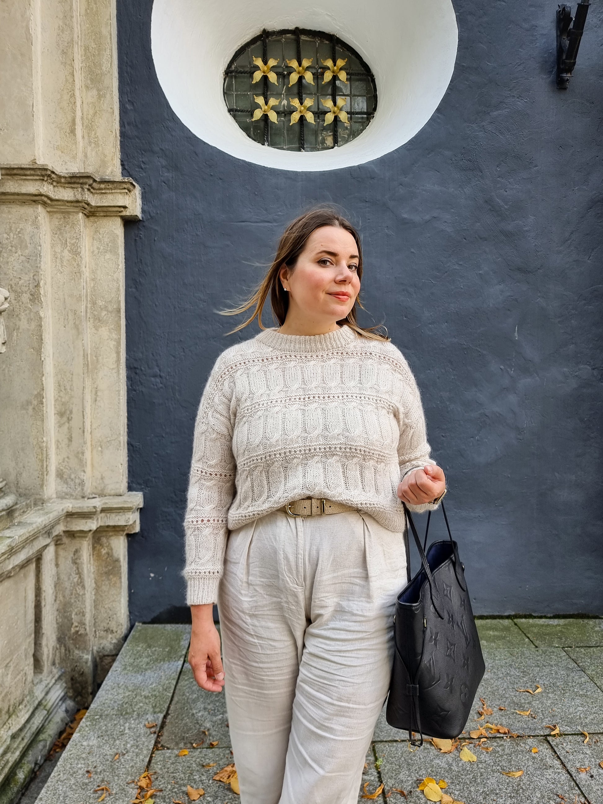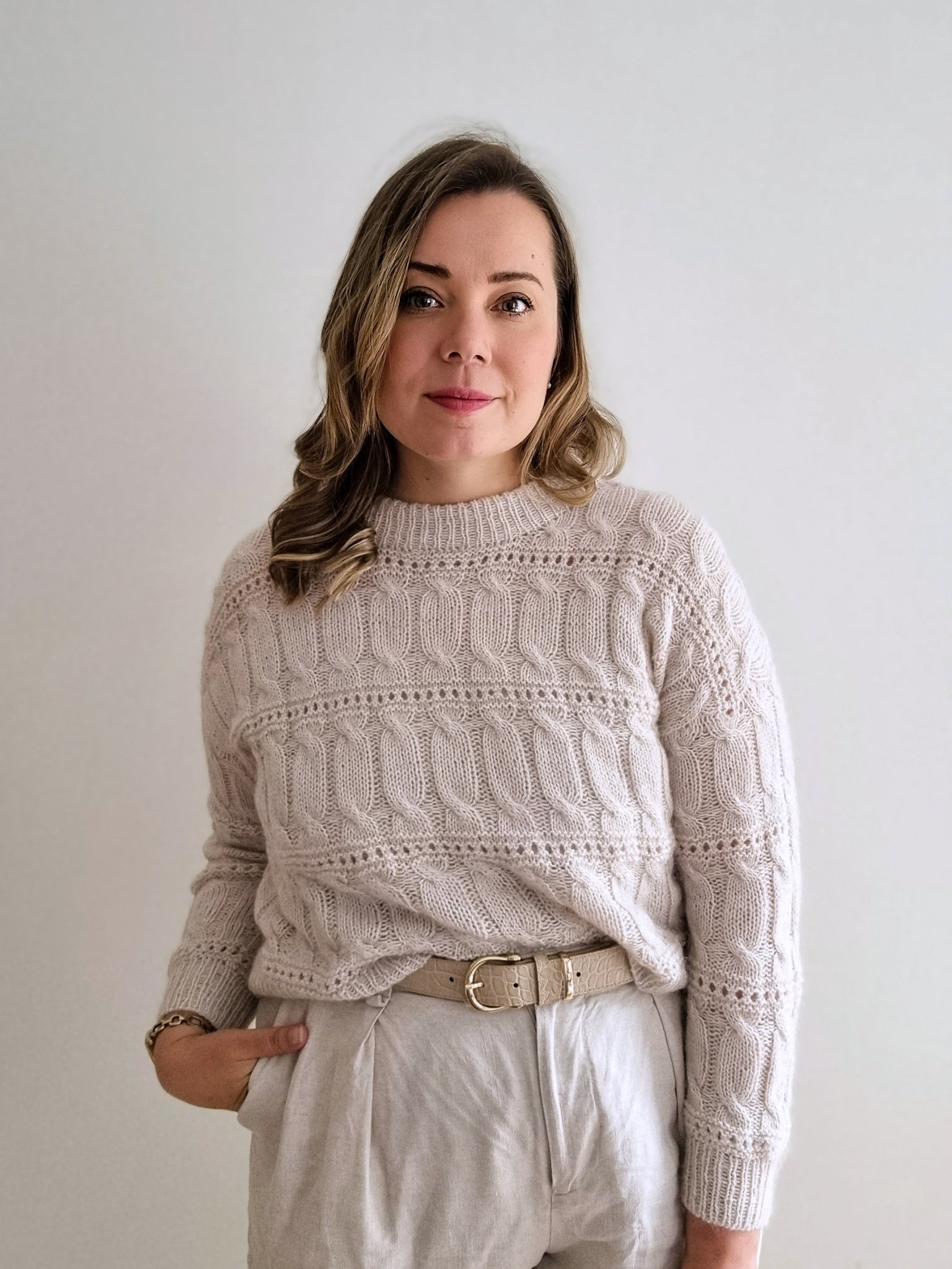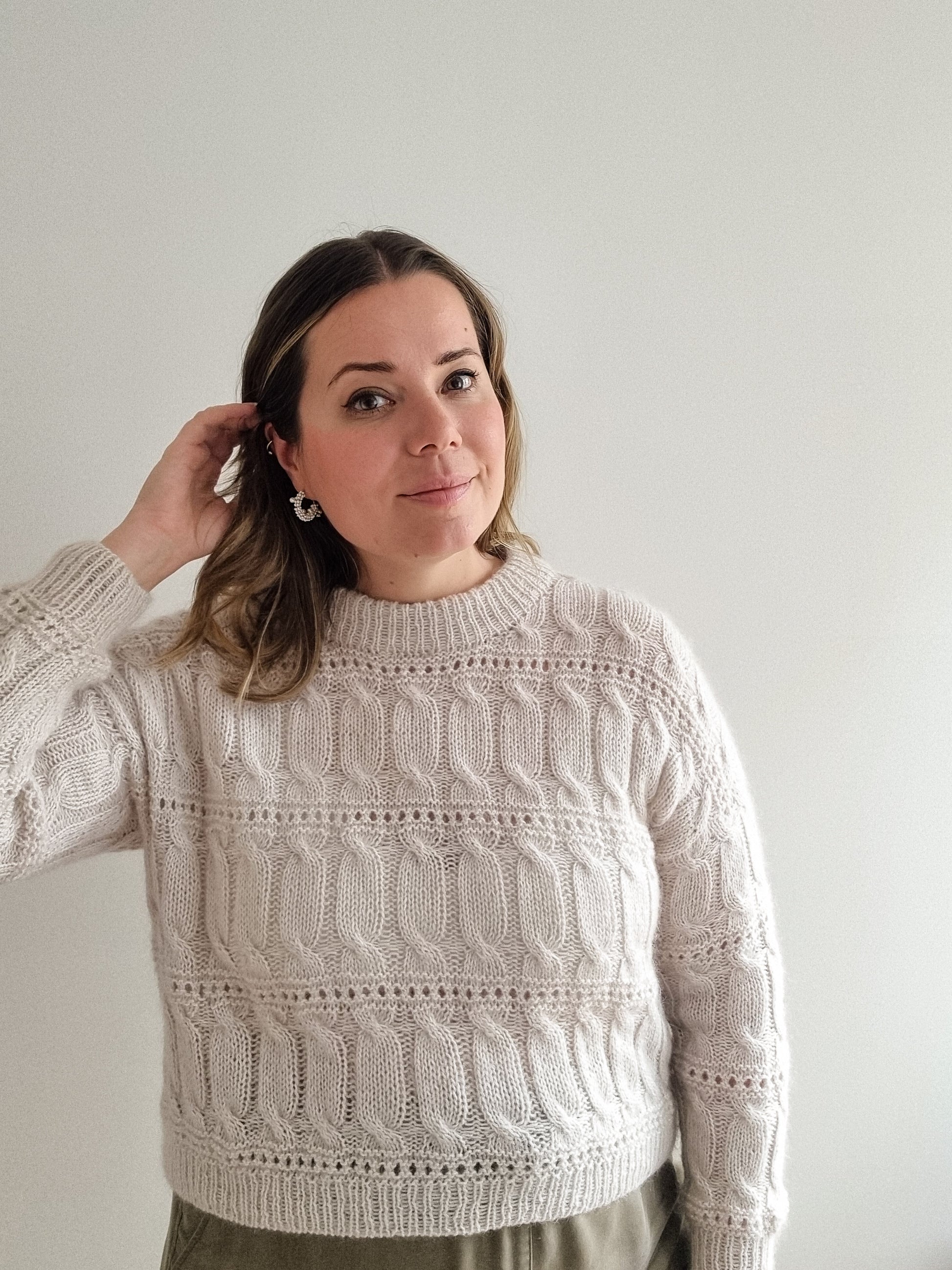 The length of the body and sleeves are easily modified to suit your own body measurements. I recommend trying the sweater on every now and then while working on it to make sure you get the perfect length for your style. Note: You can easily modify the body shorter for a cropped look. For a cropped sweater I would only work 15-20 cm / 6-8 inches for the body.