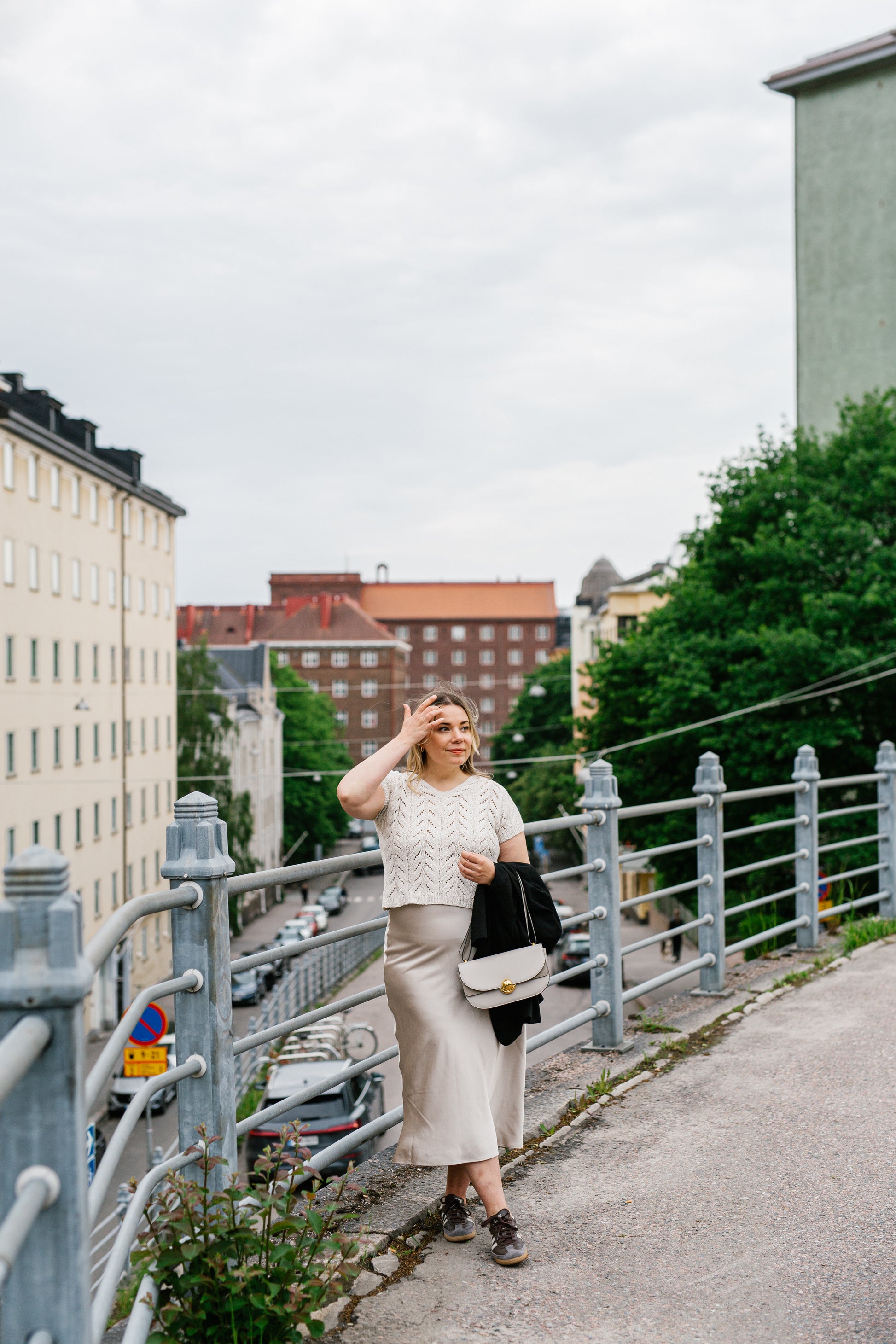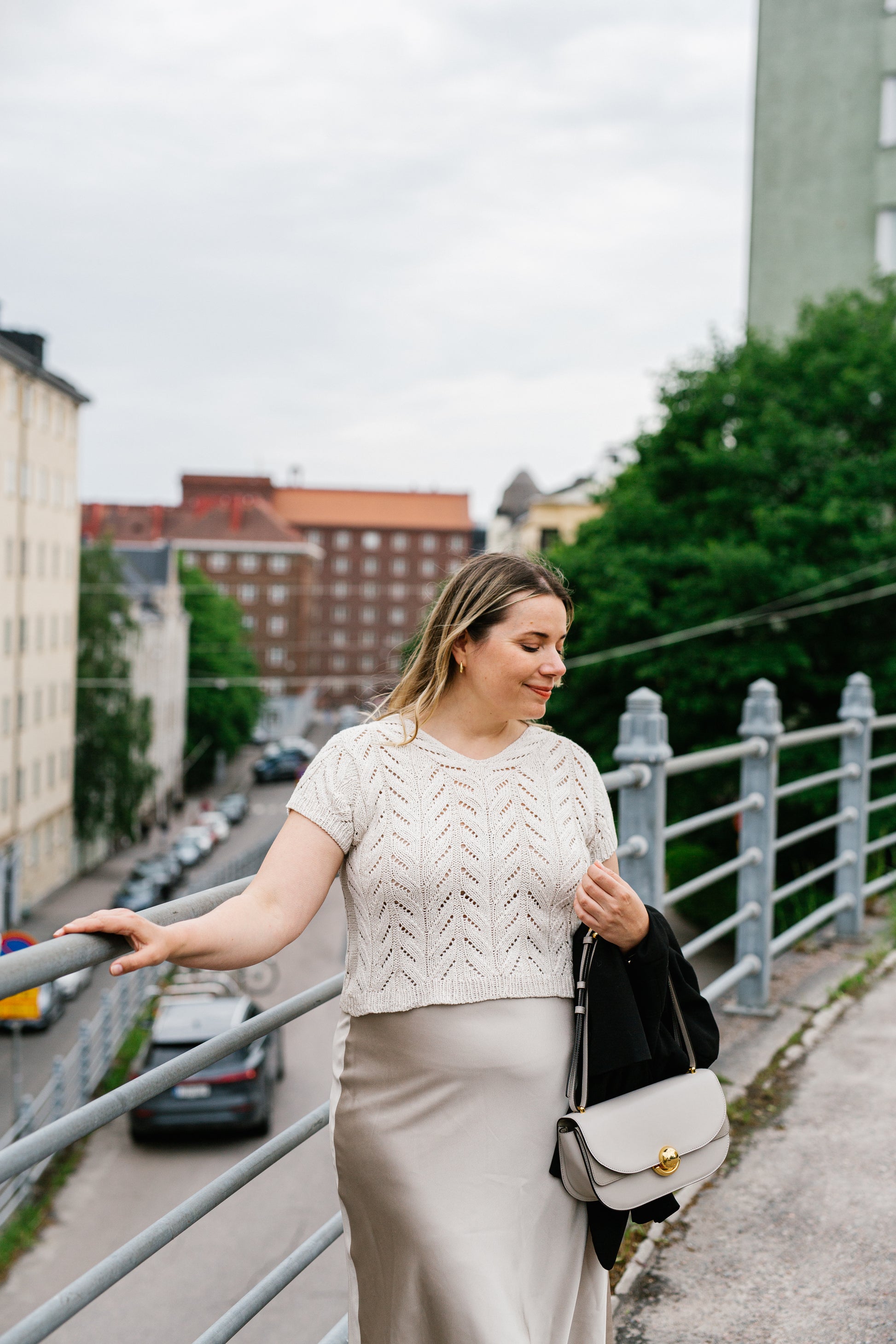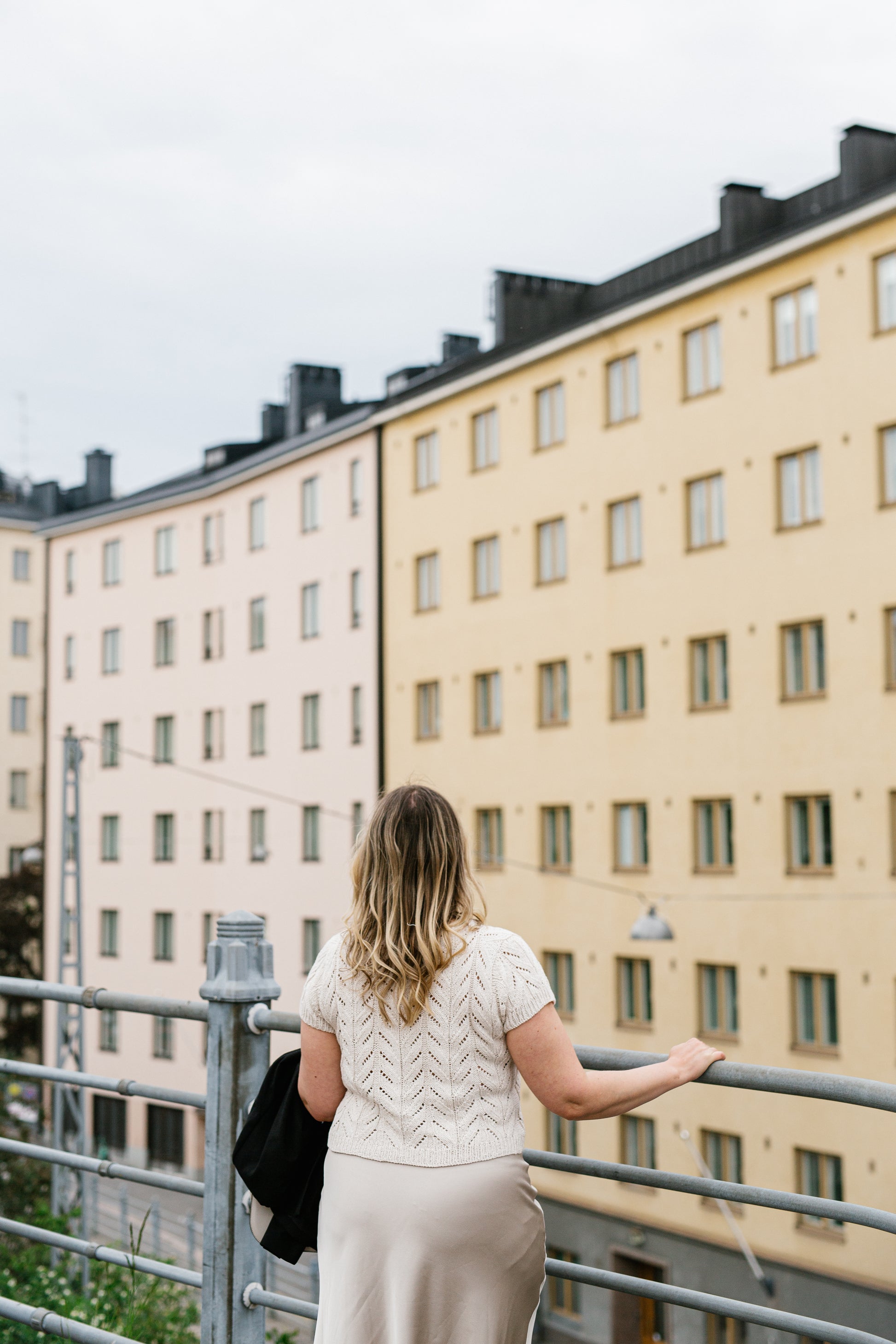 For the stitch patterns to show best, I recommend choosing unicolor or slightly tonal colorways. The Ebba tee is worked in DK weight yarn but you can also knit it by holding one strand of fingering weight yarn together with a strand of silk mohair.