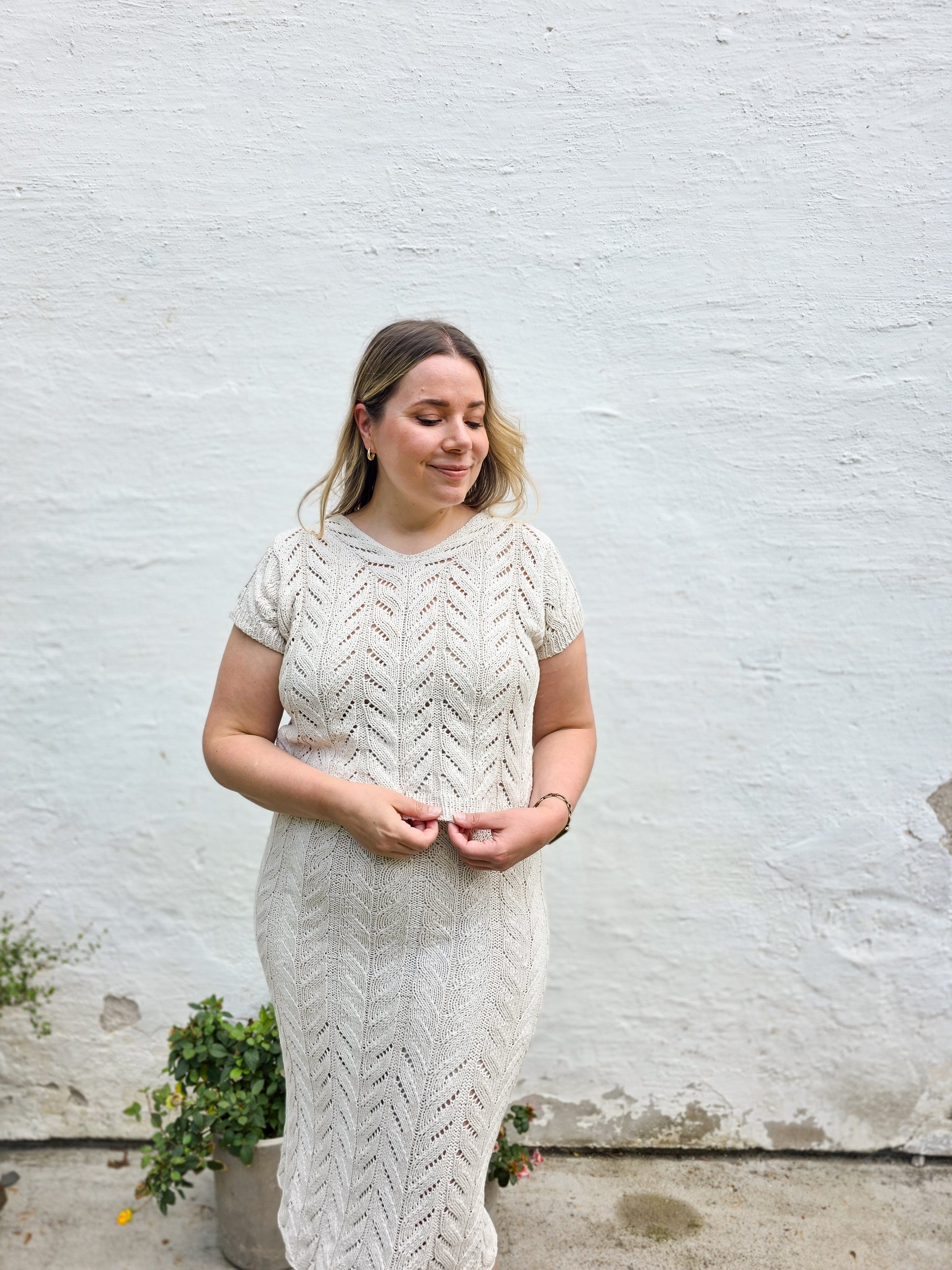 Sample: 5 (5, 6, 6, 6) (7, 8, 8, 9) skeins of Sandnes Garn Line (53% cotton, 33 % viscose, 14 % linen; 110 meters / 120 yards per 50 g), shown in the colorway 1015.