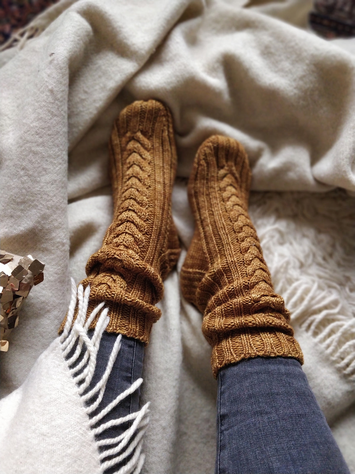 These socks are suitable for beginners who want to expand their skills beyond the very basics. They are also fun and effortless for the more experienced knitters - I knitted a big part of the leg of my first socks while chatting with my friends over a glass of wine. What can be more Hygge than that?
