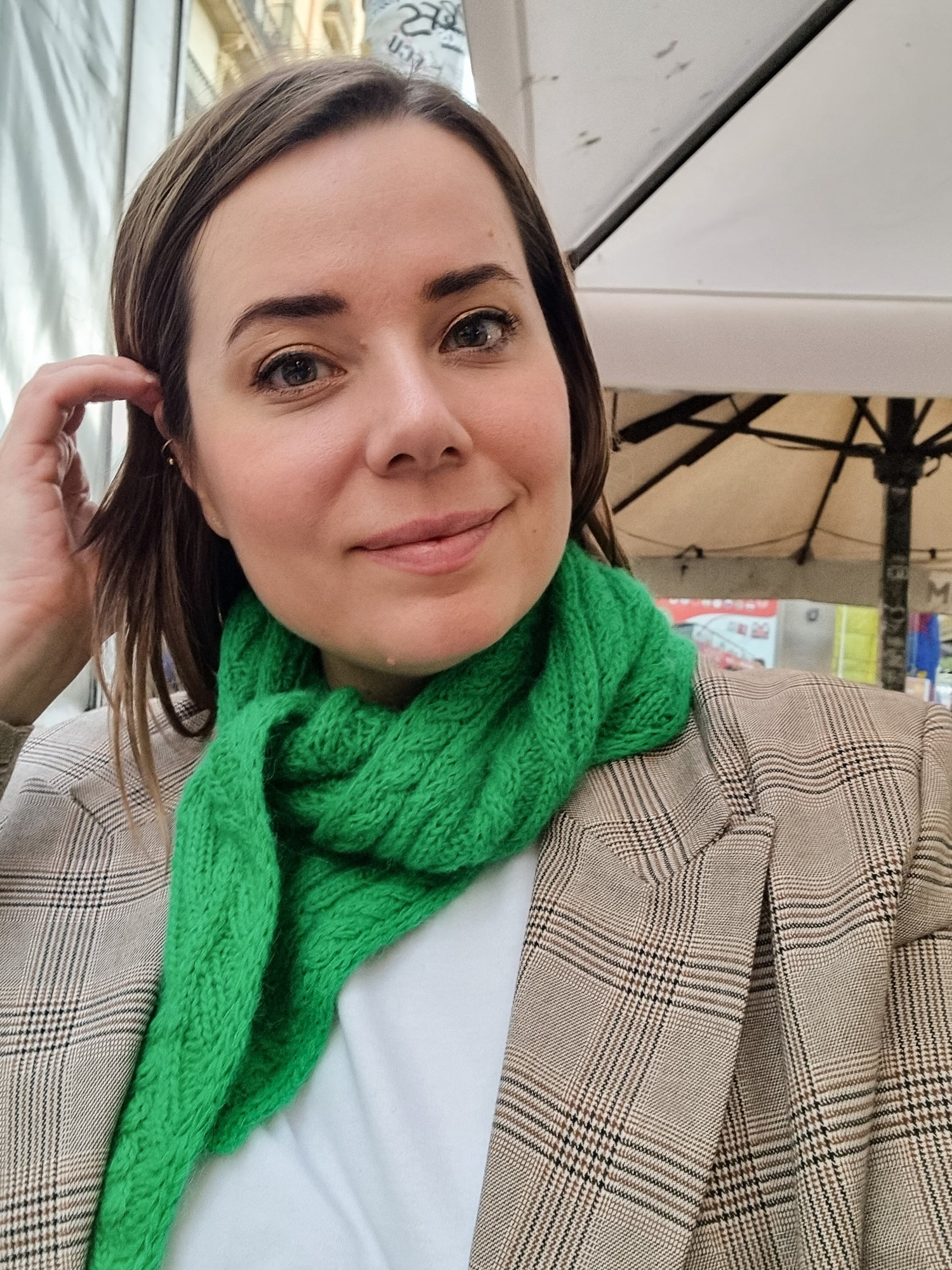 The Kaarina shawl is a little kerchief that can be worn in multiple ways. It is started at the tip of the shawl, then increased on every right side row until the full width before decreasing your way back to the other tip. The size can easily be modified by adding more pattern repeats for a larger shawl.