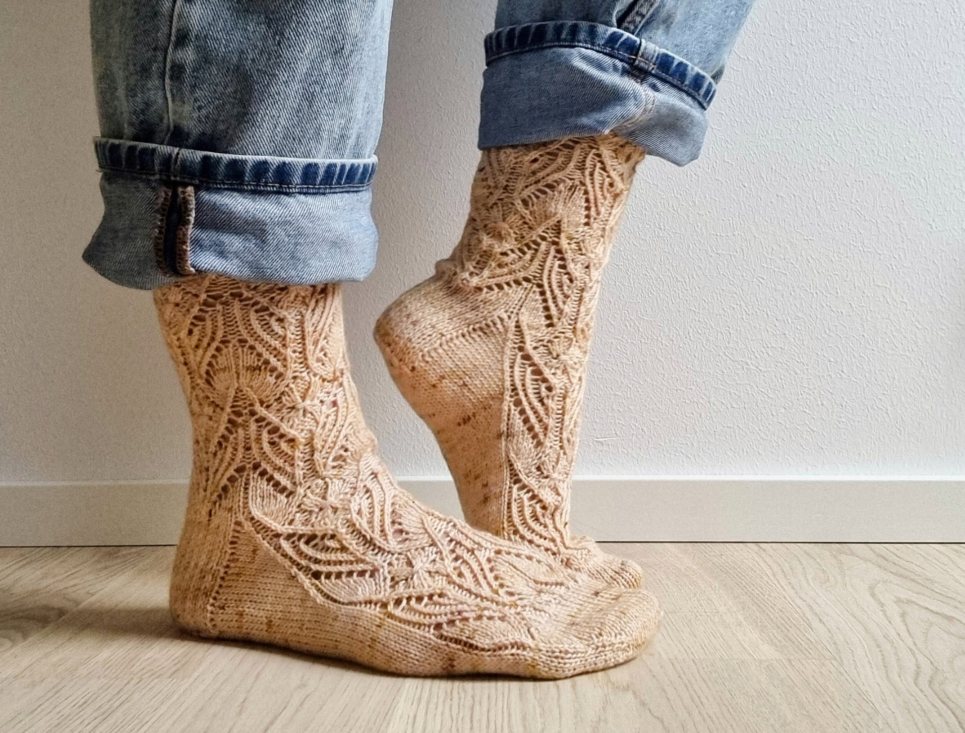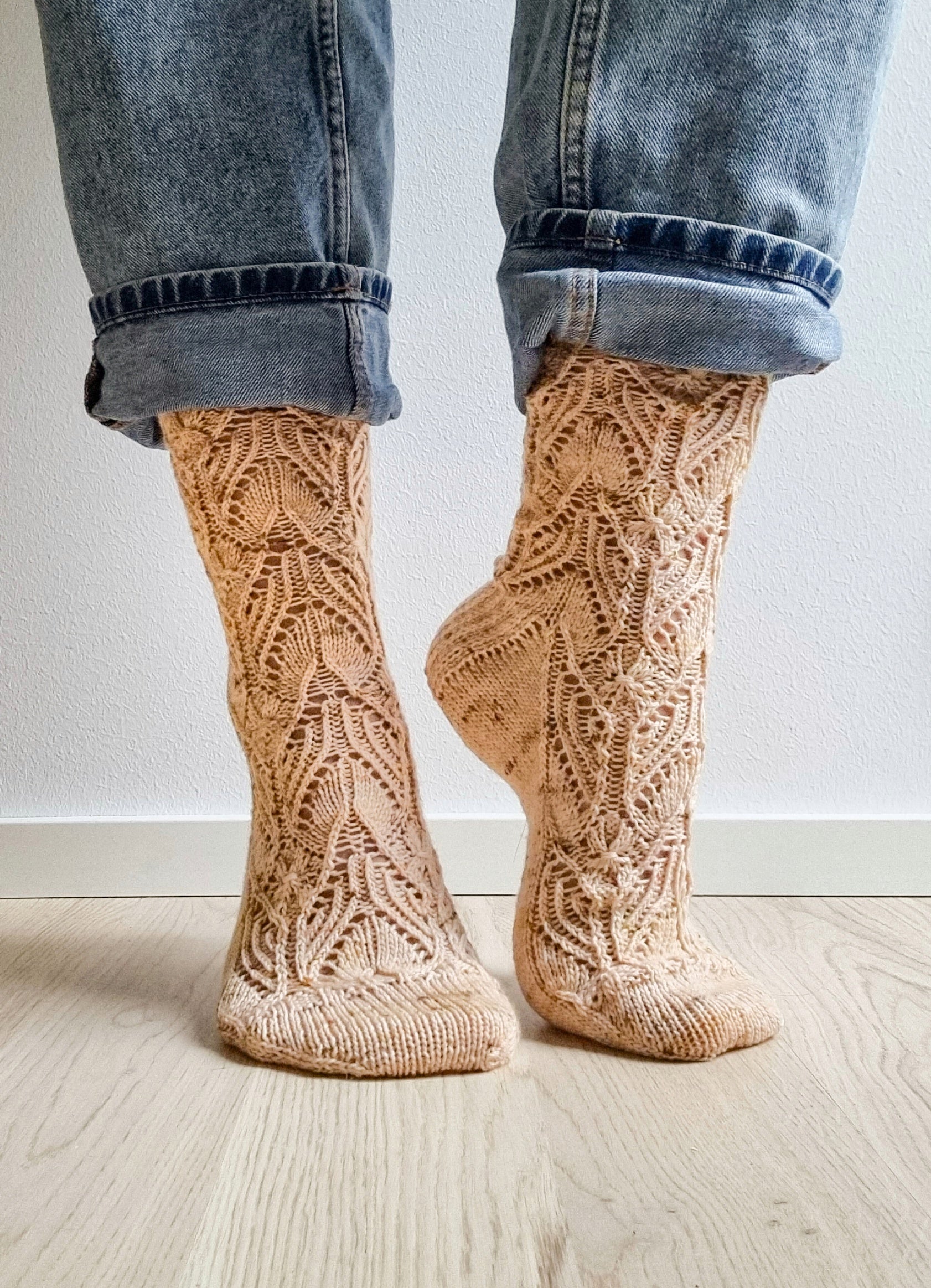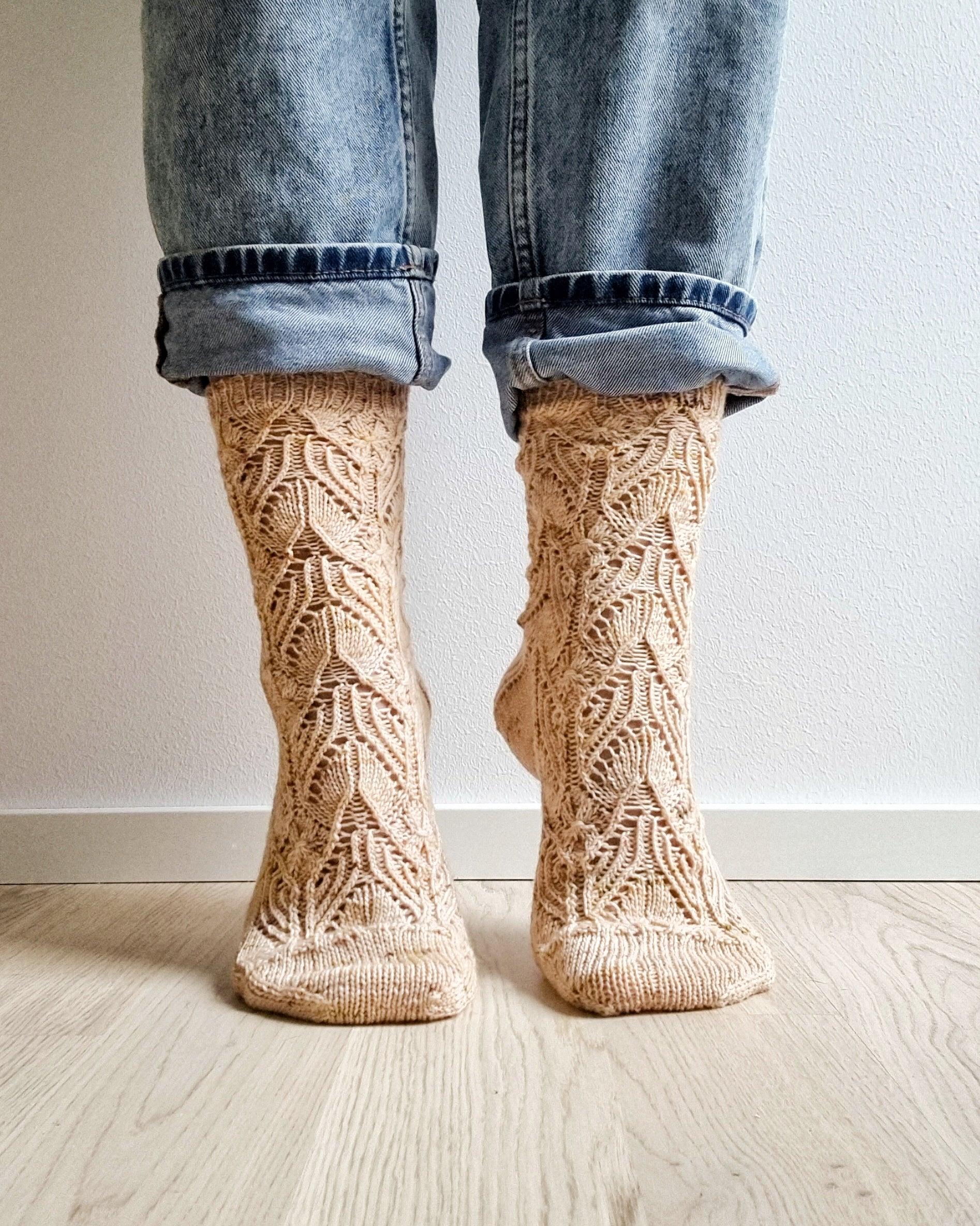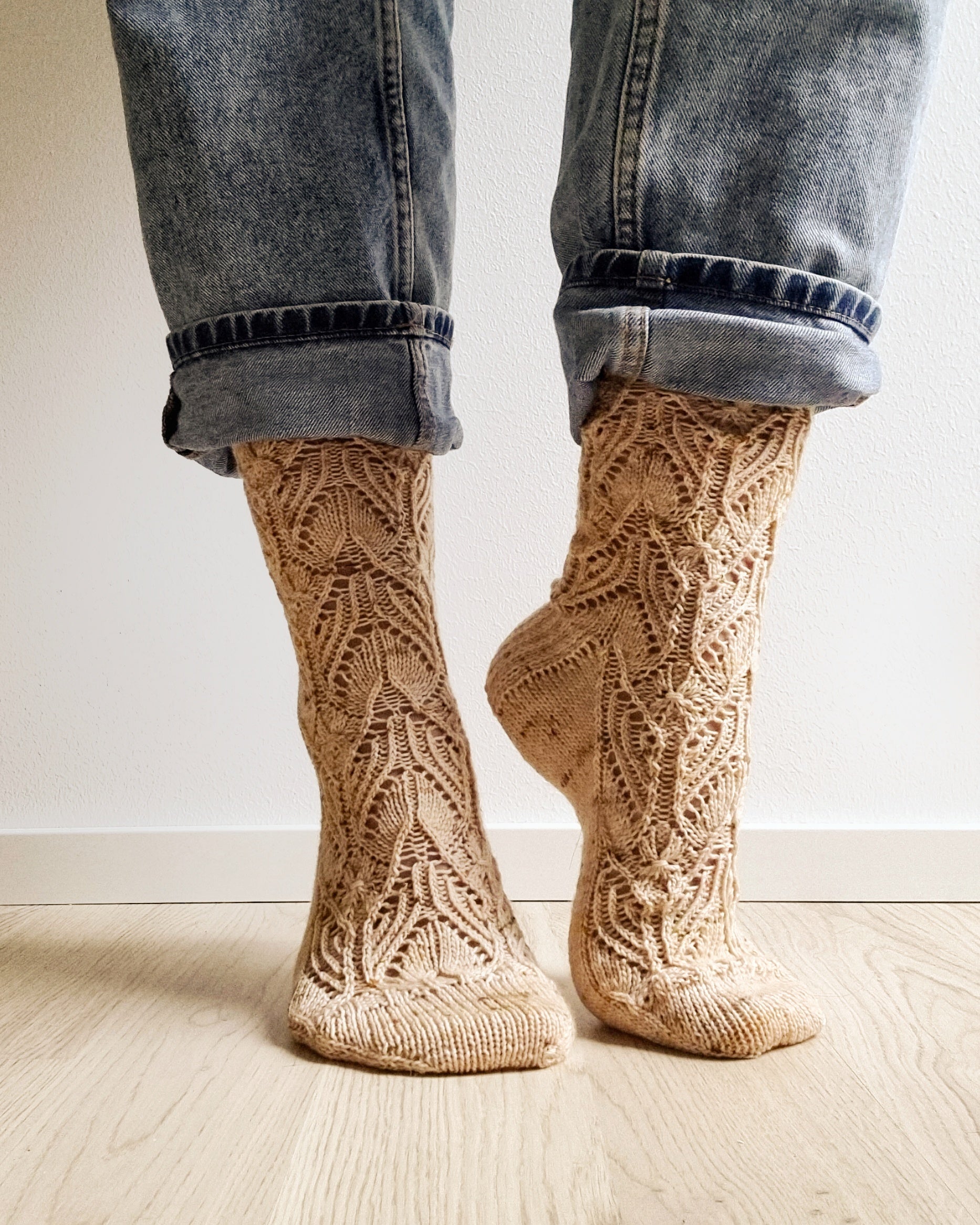 The Kuutar socks have the same beautiful lace pattern as my other Kuutar patterns. The lace is from Hitomi Shida’s Japanese Knitting Stitch Bible.