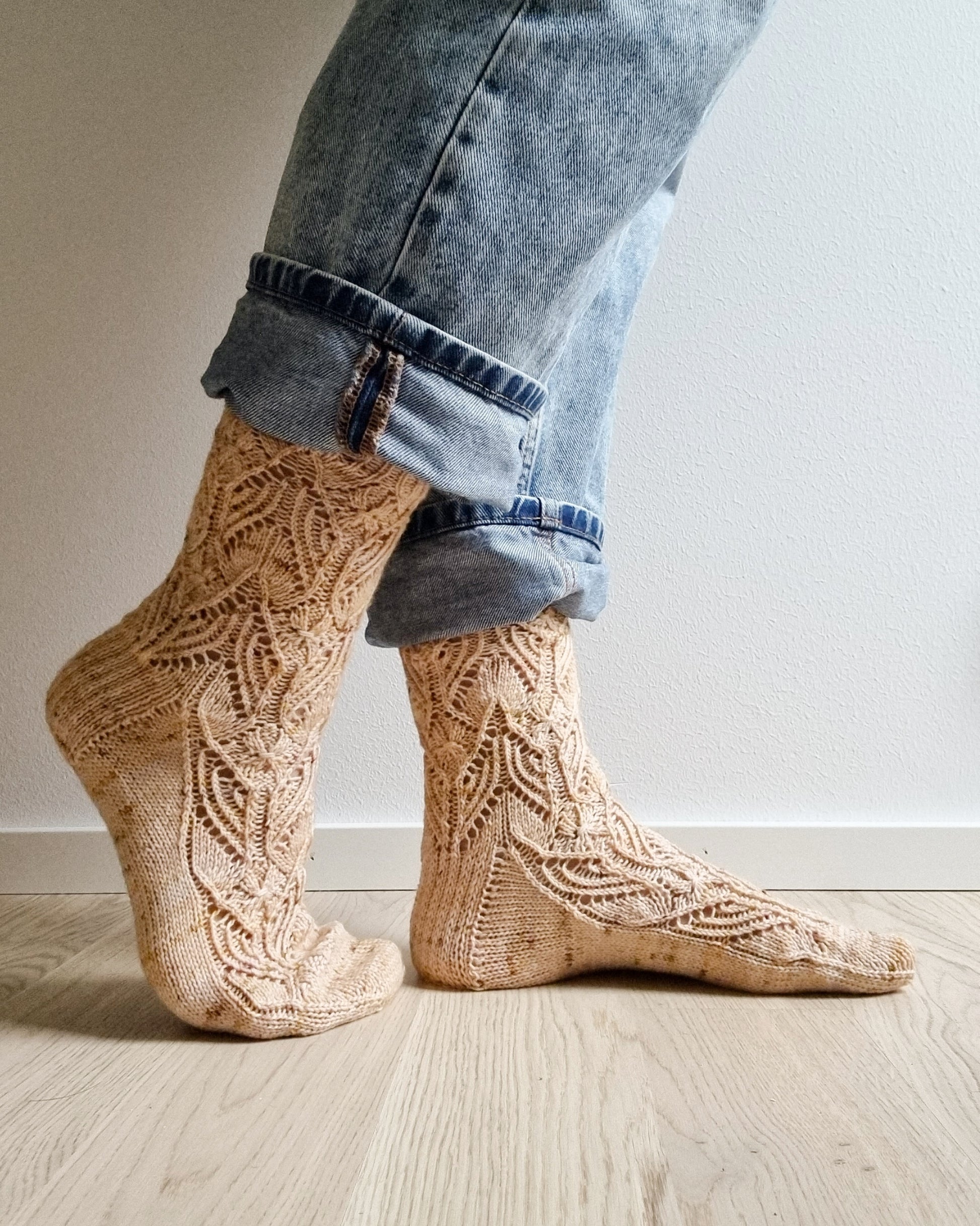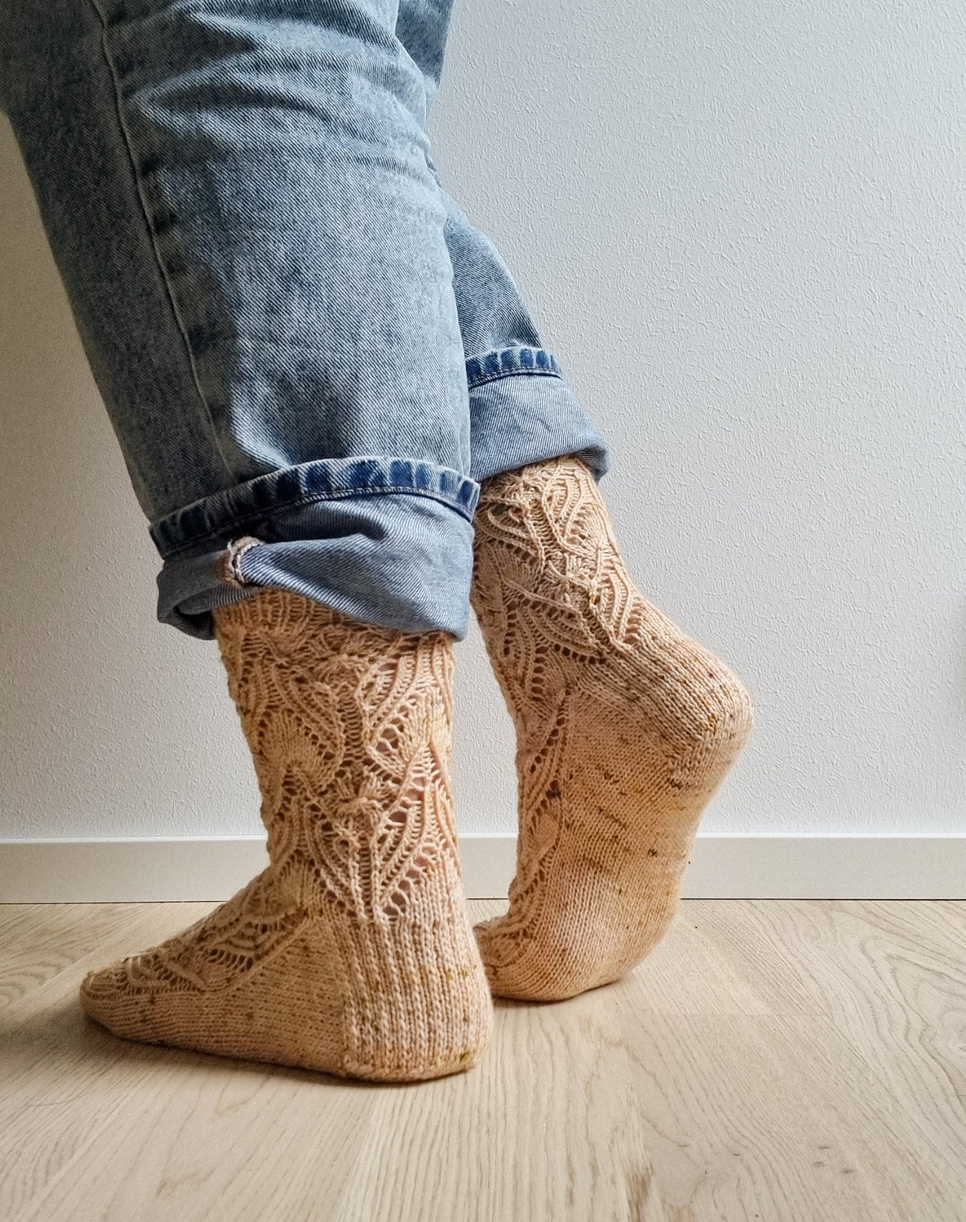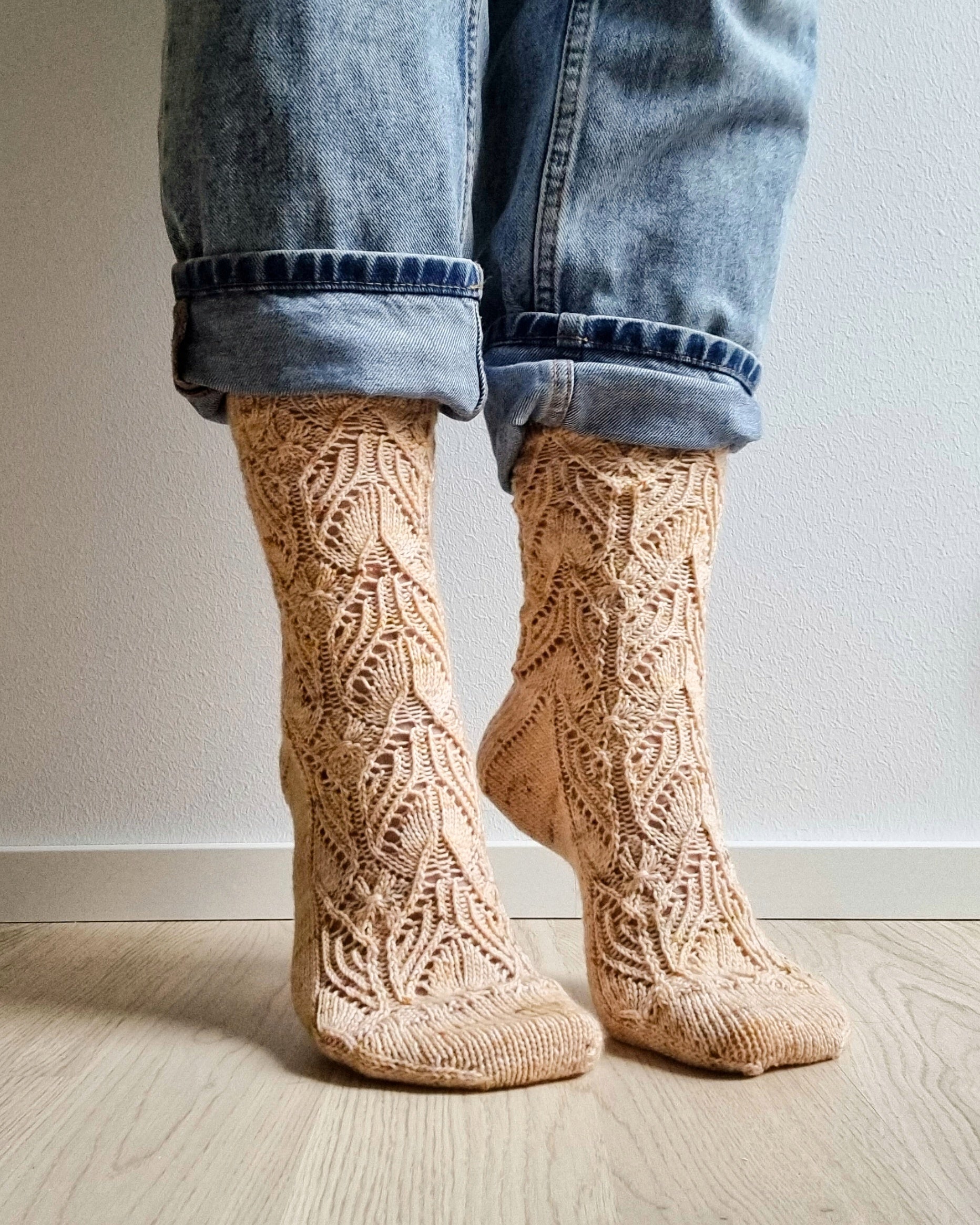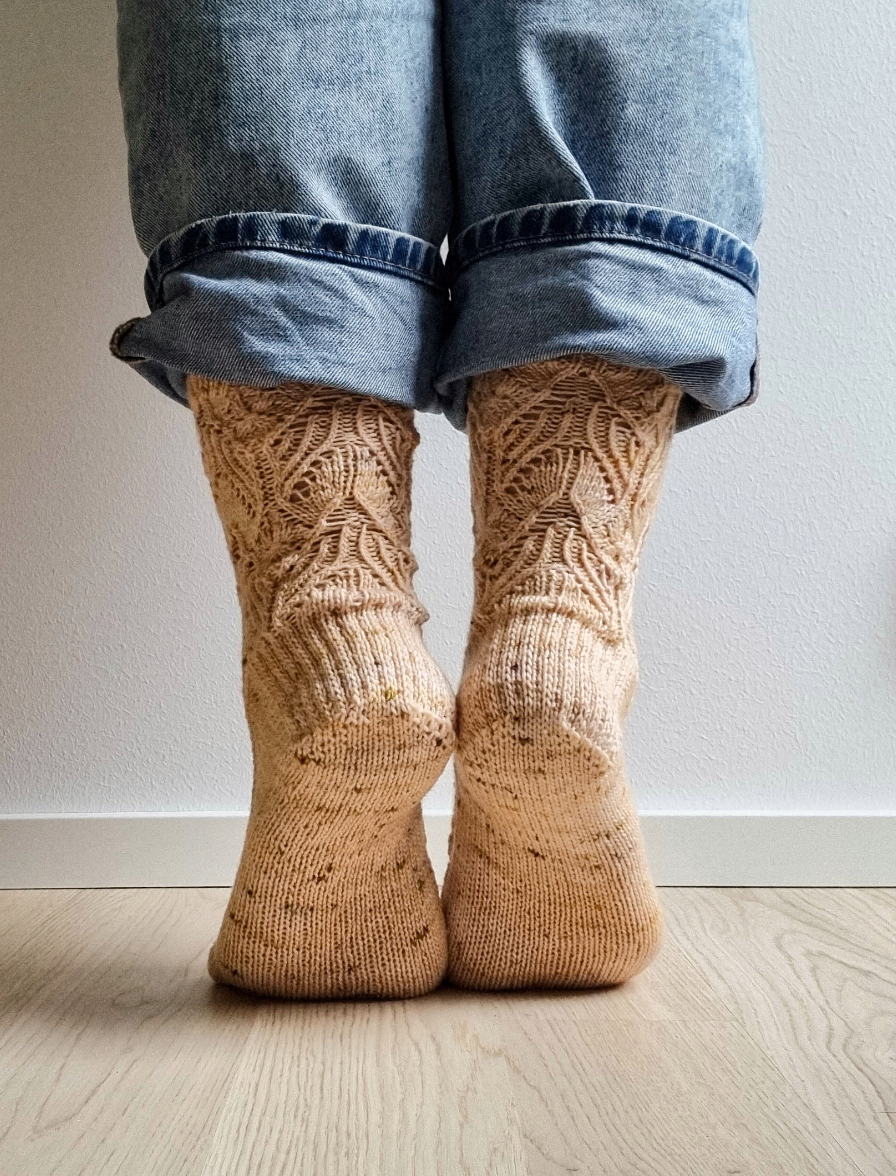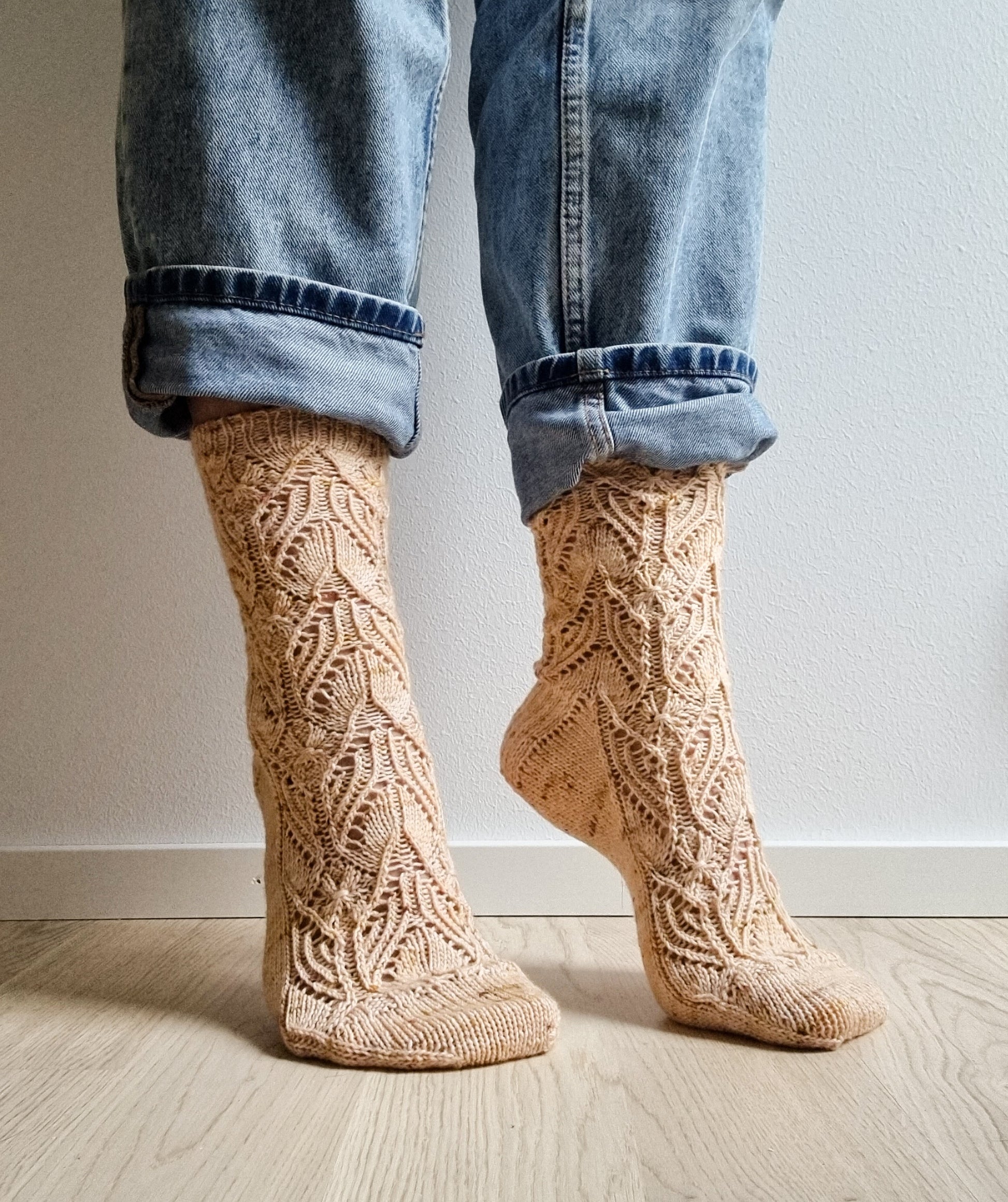 The Kuutar socks have the same beautiful lace pattern as my other Kuutar patterns. The lace is from Hitomi Shida’s Japanese Knitting Stitch Bible.