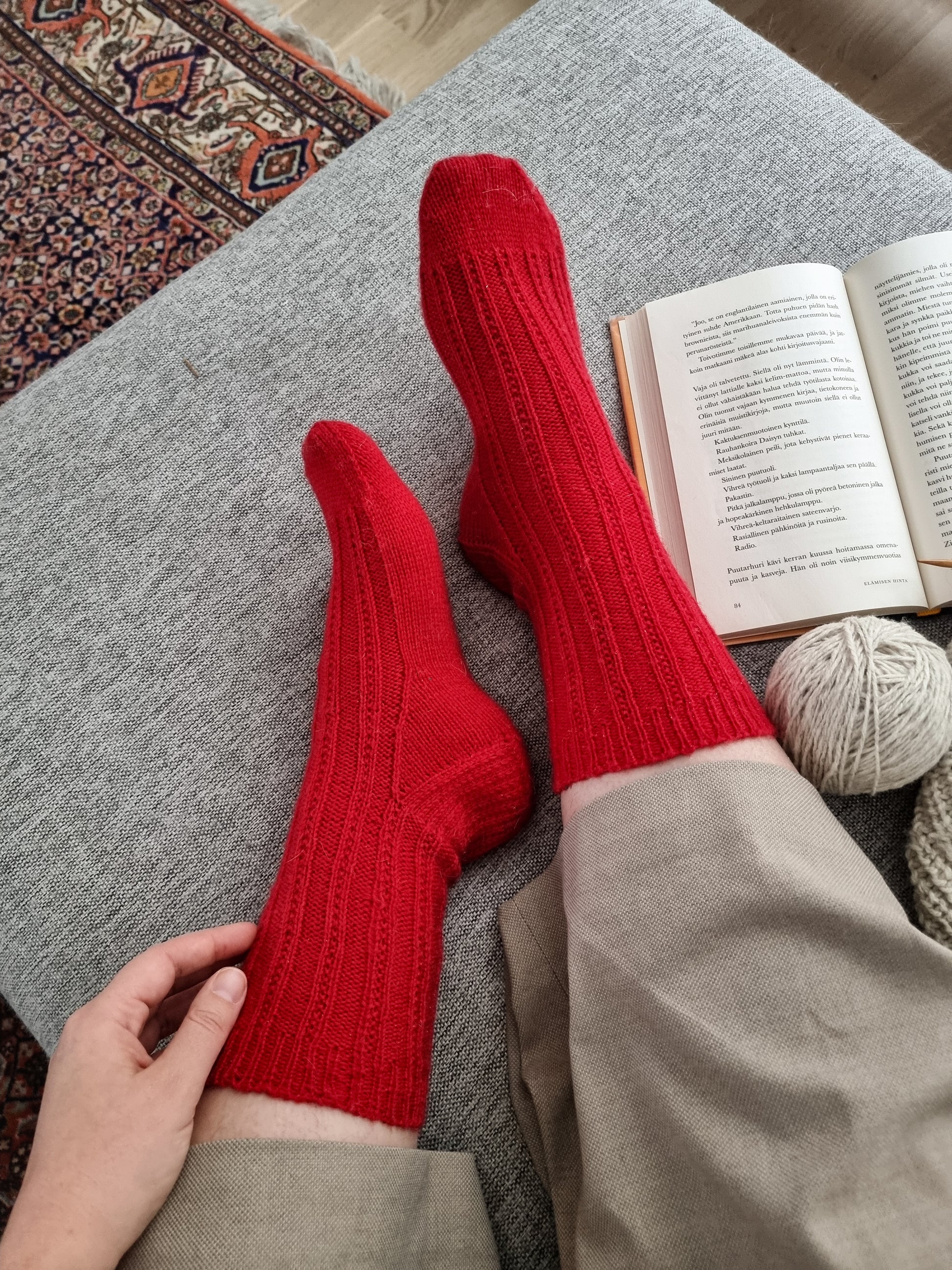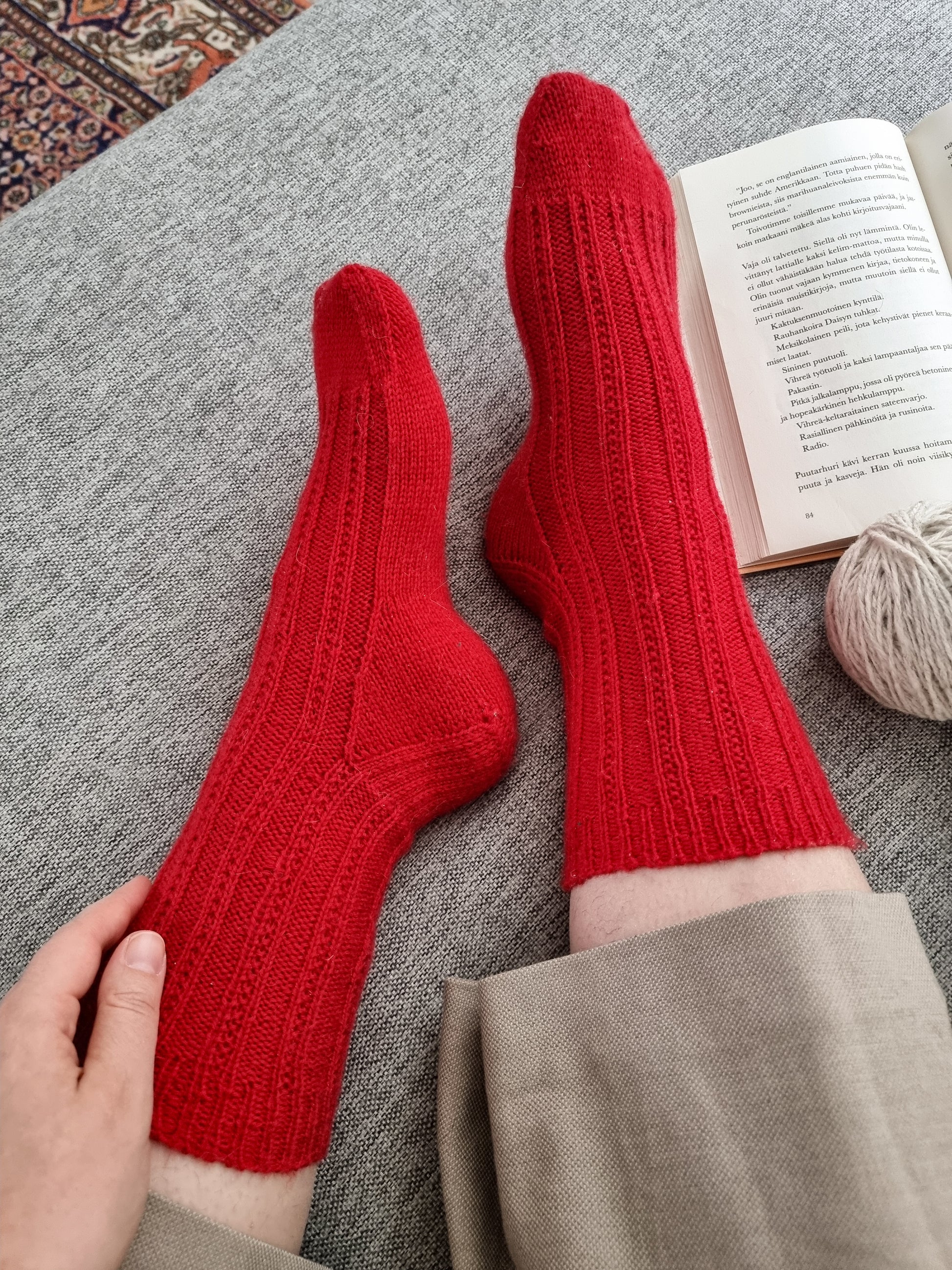 The Lulu socks are knitted in an easy broken rib pattern, which gives the classic ribbed socks a modern twist.