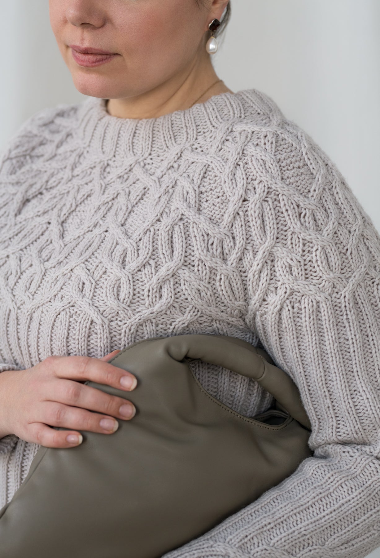 8 (8, 9, 10, 11, 12, 13, 14, 16) skeins of Knitting For Olive Heavy Merino (100 % wool; 125 m / 137 yards per 50 g), shown in colorway Marzipan, or 890 (980, 1080, 1180, 1300, 1430, 1570, 1730, 1900) m / 970 (1070, 1180, 1300, 1430, 1570, 1730, 1900, 2090) yards of similar worsted weight yarn.