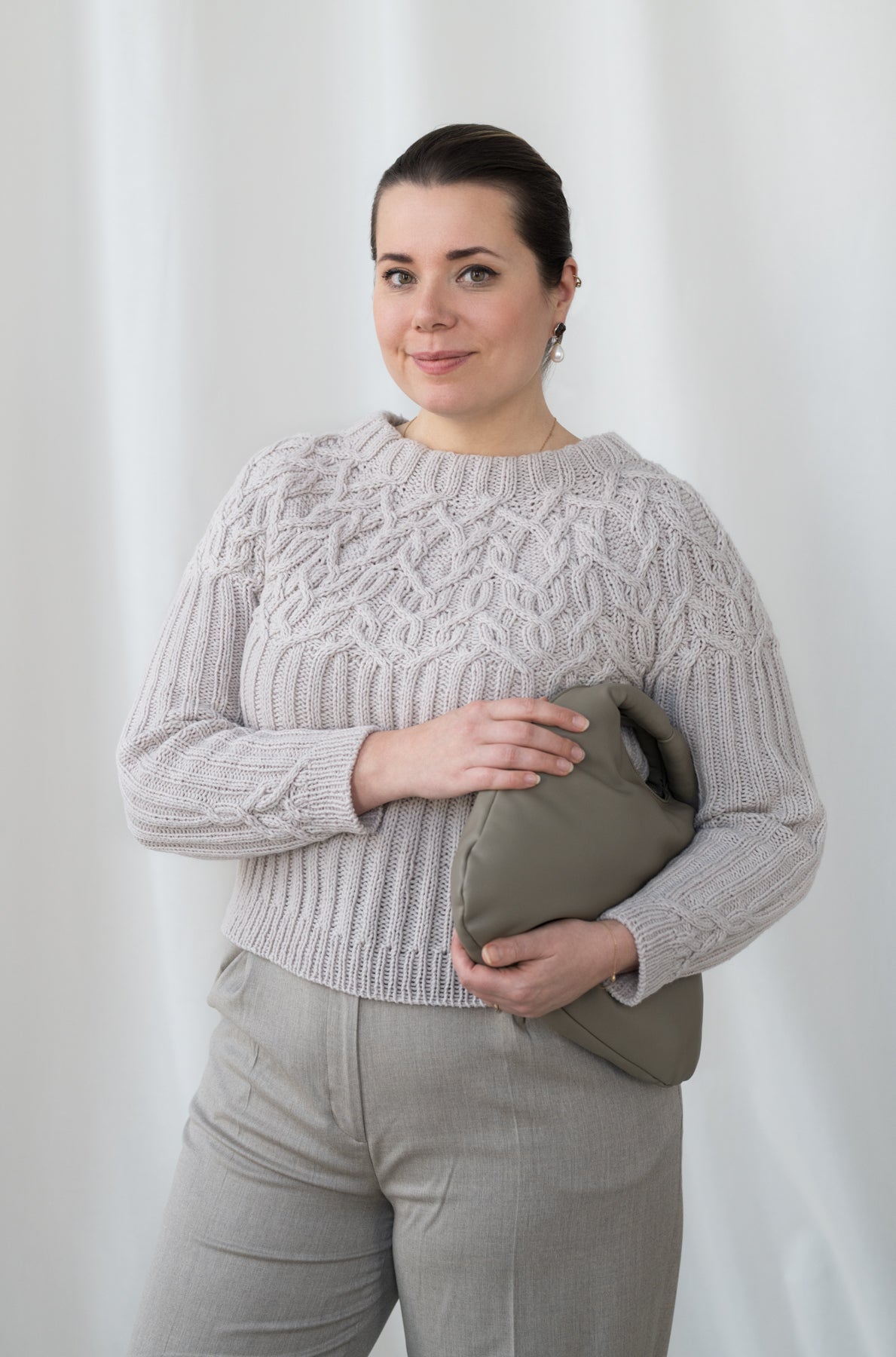 Finished bust circumference: 88 (101, 109.5, 122, 126.5, 139, 151.5, 156, 168.5) cm / 34.75 (39.75, 43, 48, 49.75, 54.75, 59.75, 61.5, 66.25) inches including the intended ease of 6-15 cm / 2.25-6 inches