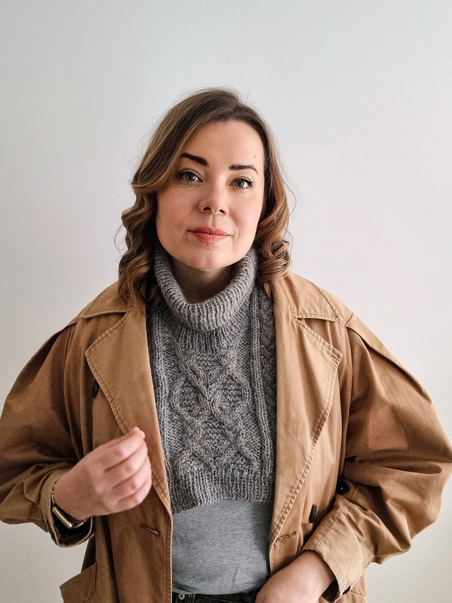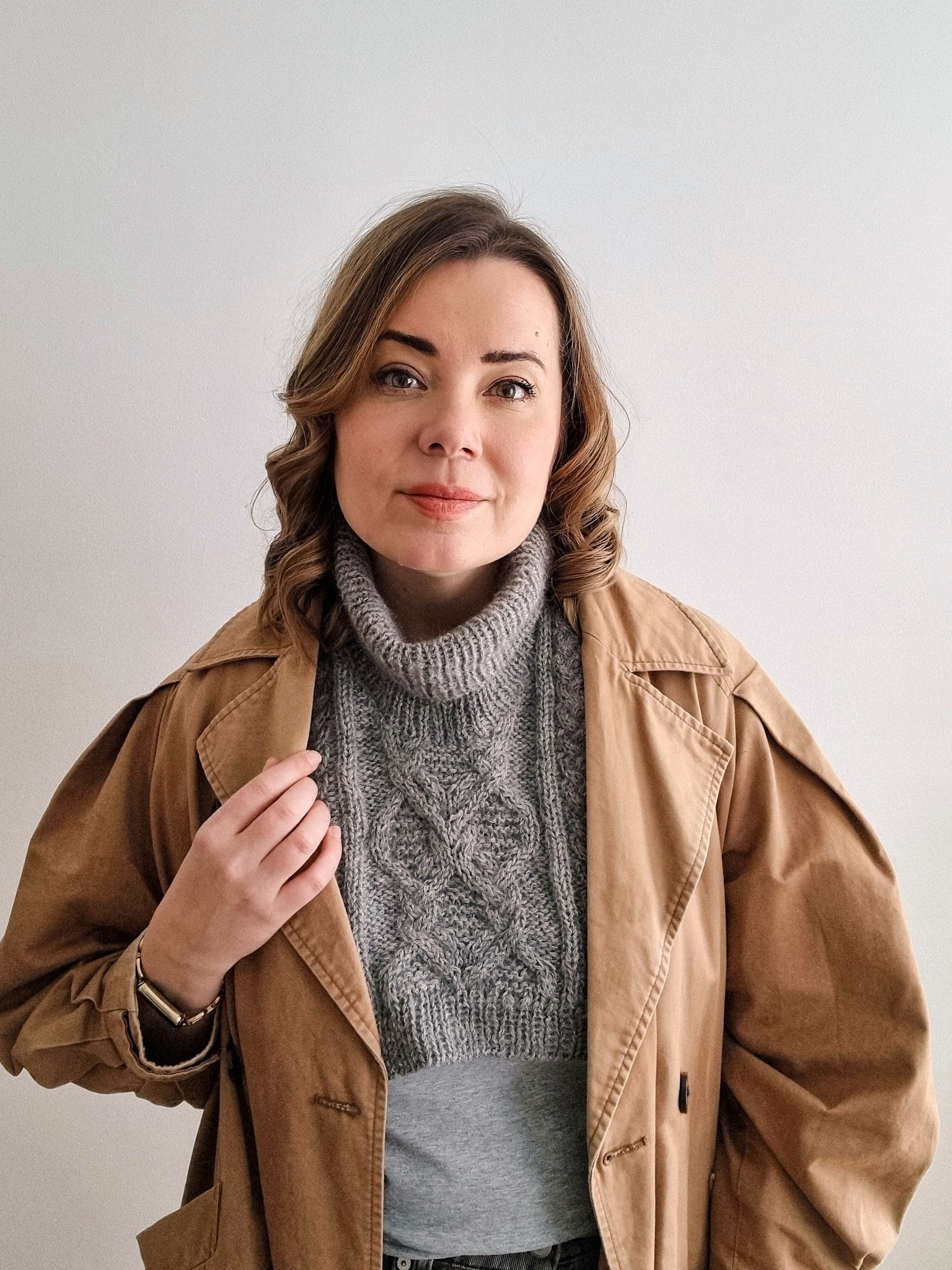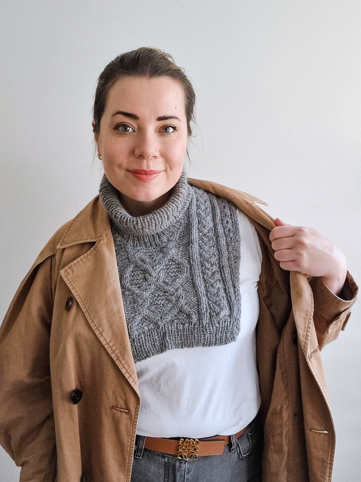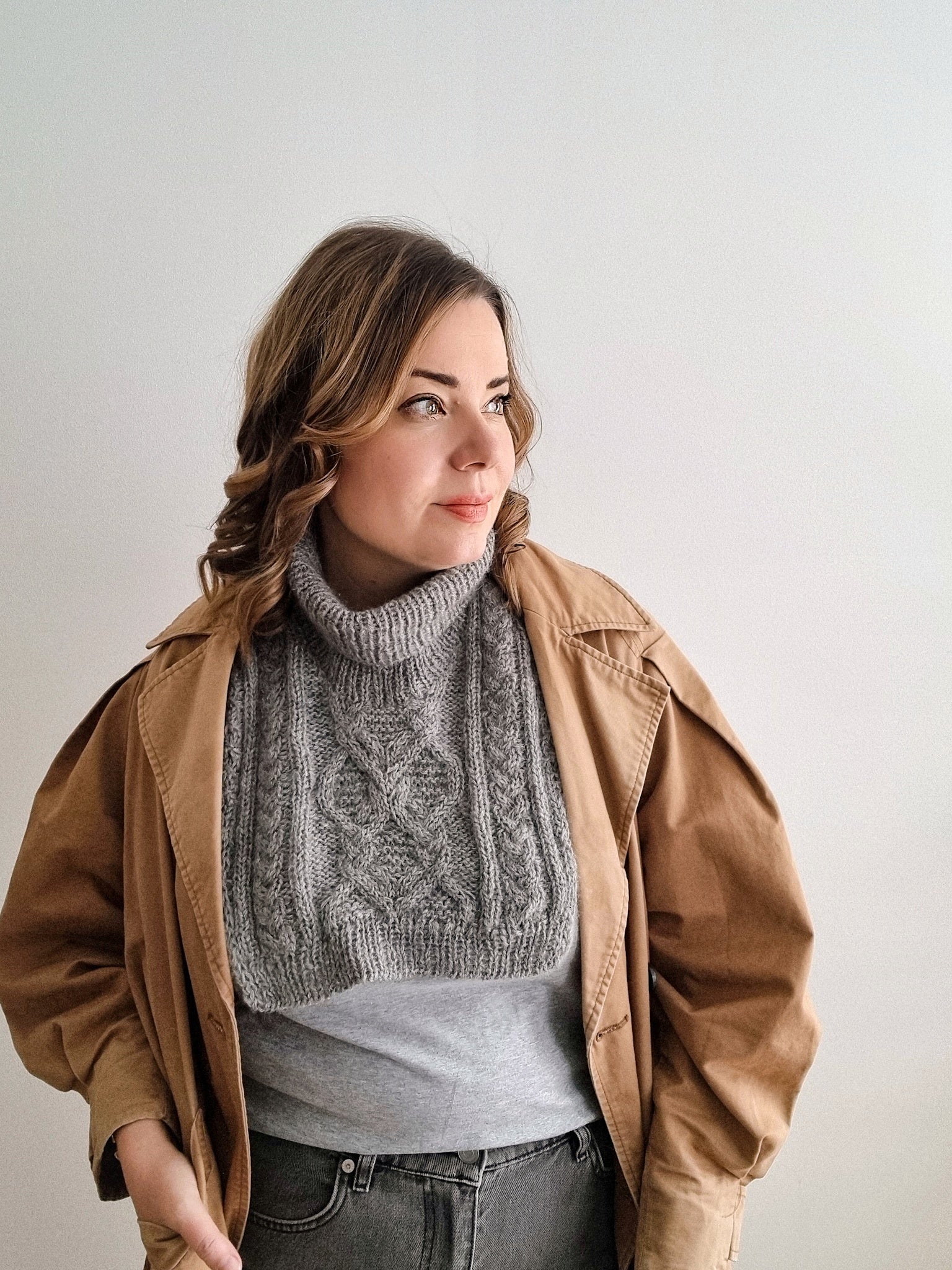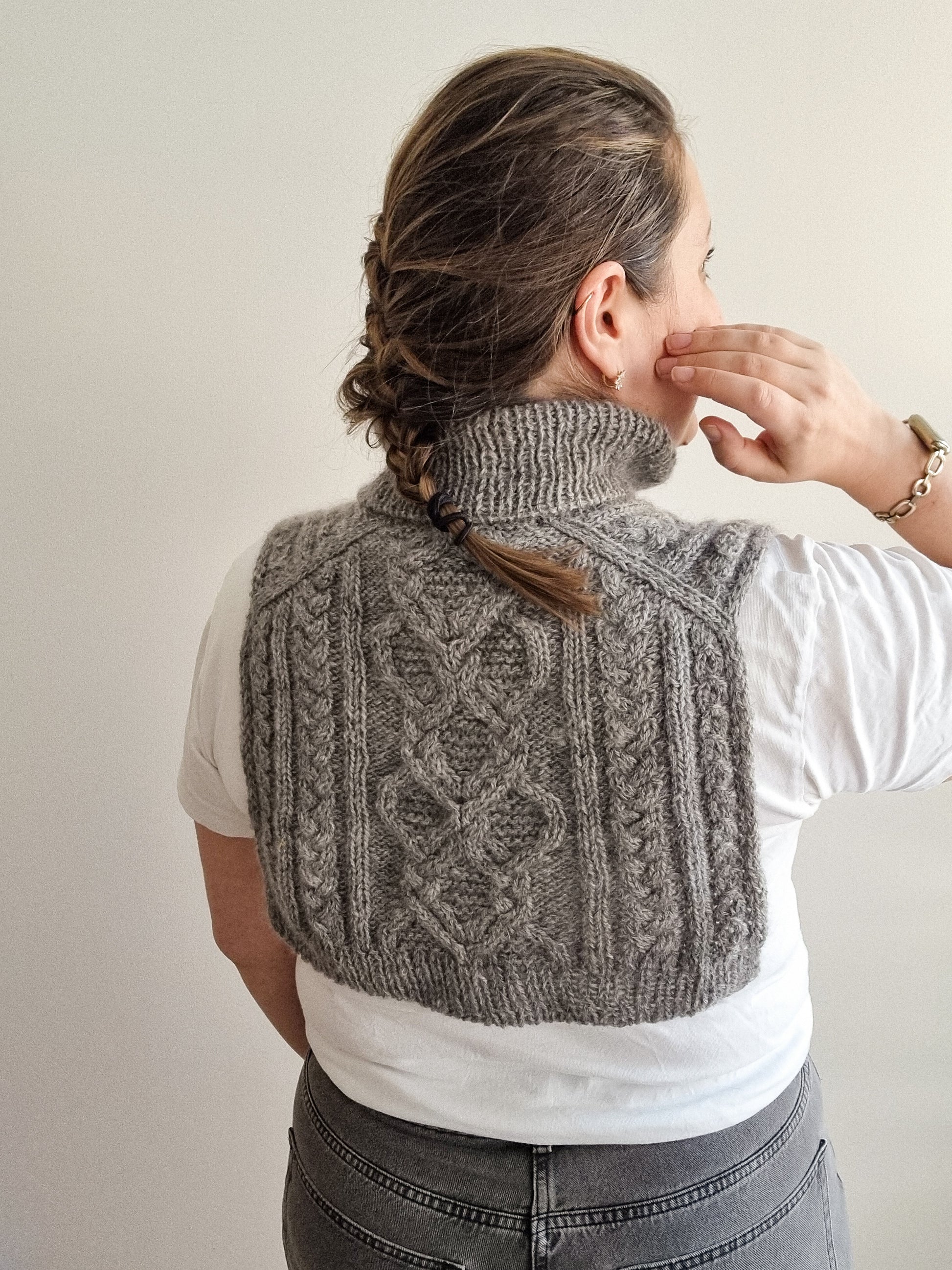 The Moonflower collar is perfect for adding an extra layer of warmth under your coat while still staying stylish. The collar has a beautiful cable pattern on the front and the back as well as neat i-cord edges and a turtle neck.