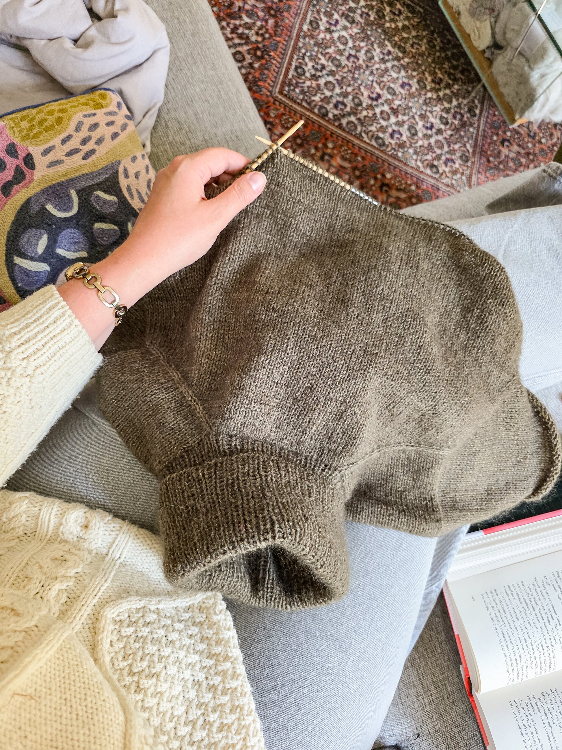 You can knit the North Wind Pullover in a single strand of DK weight yarn for a classic, defined fabric, or hold fingering weight yarn together with silk mohair for a softer, haloed look with a touch of luxury.