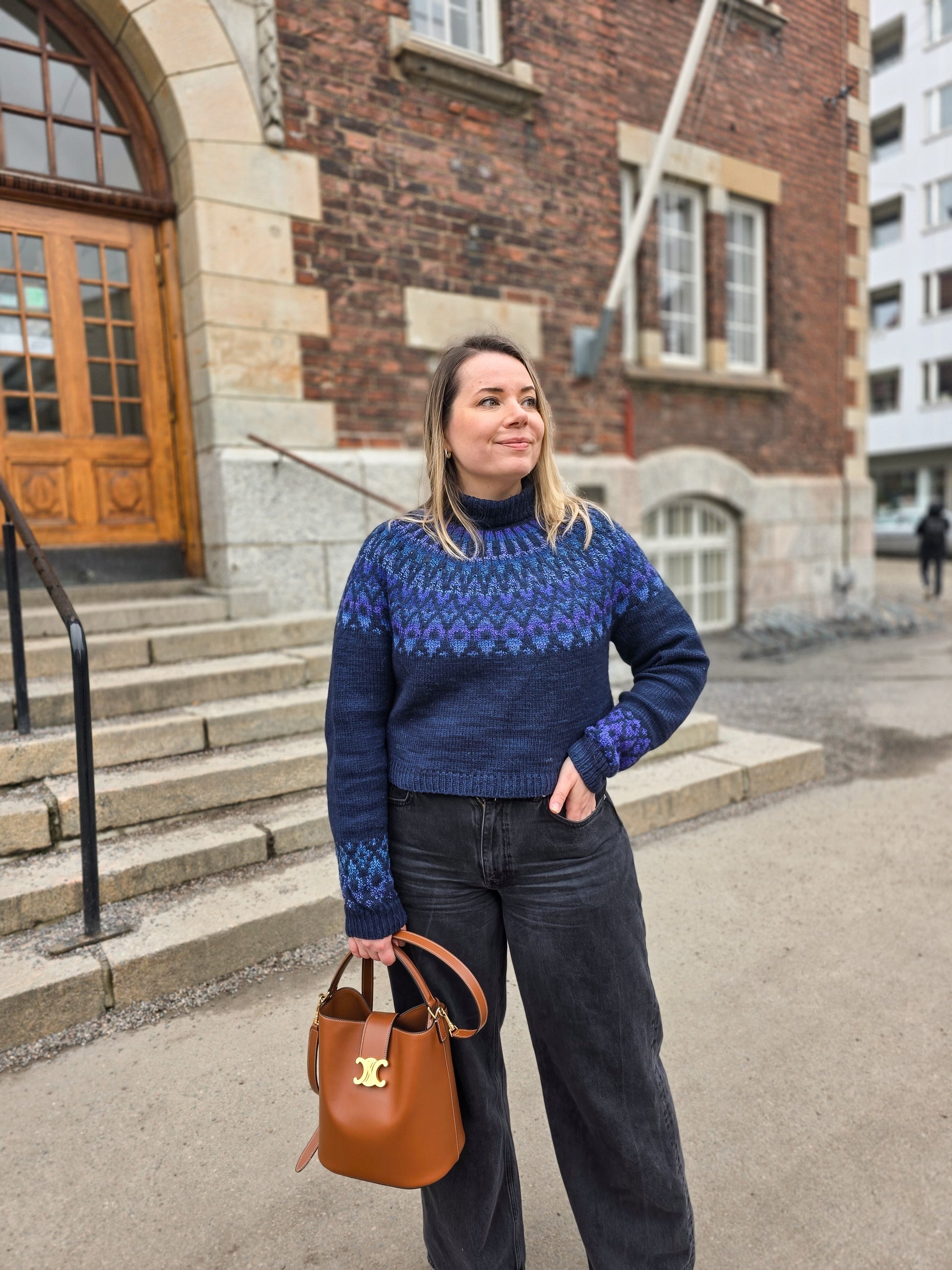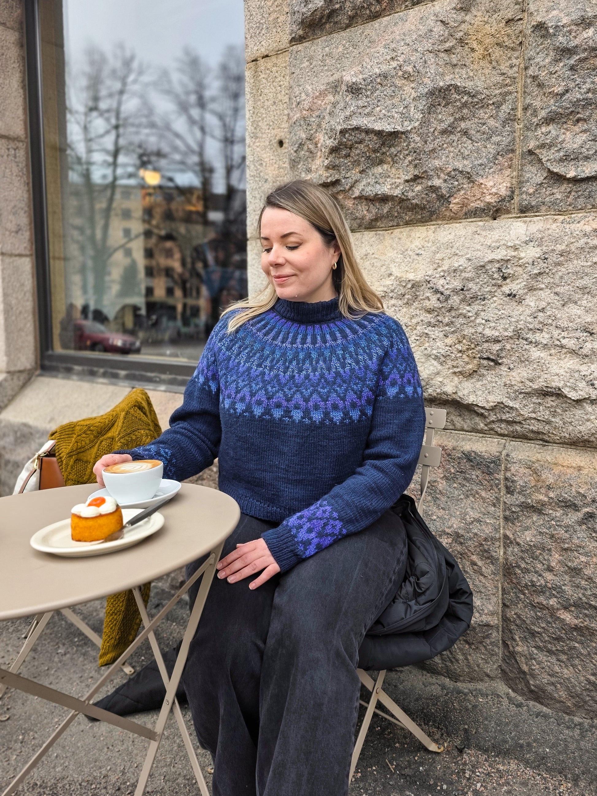 The Northern Lights pullover is an Icelandic inspired colorwork pullover with a circular yoke. The colorwork was inspired by the shifting colors of the auroras.