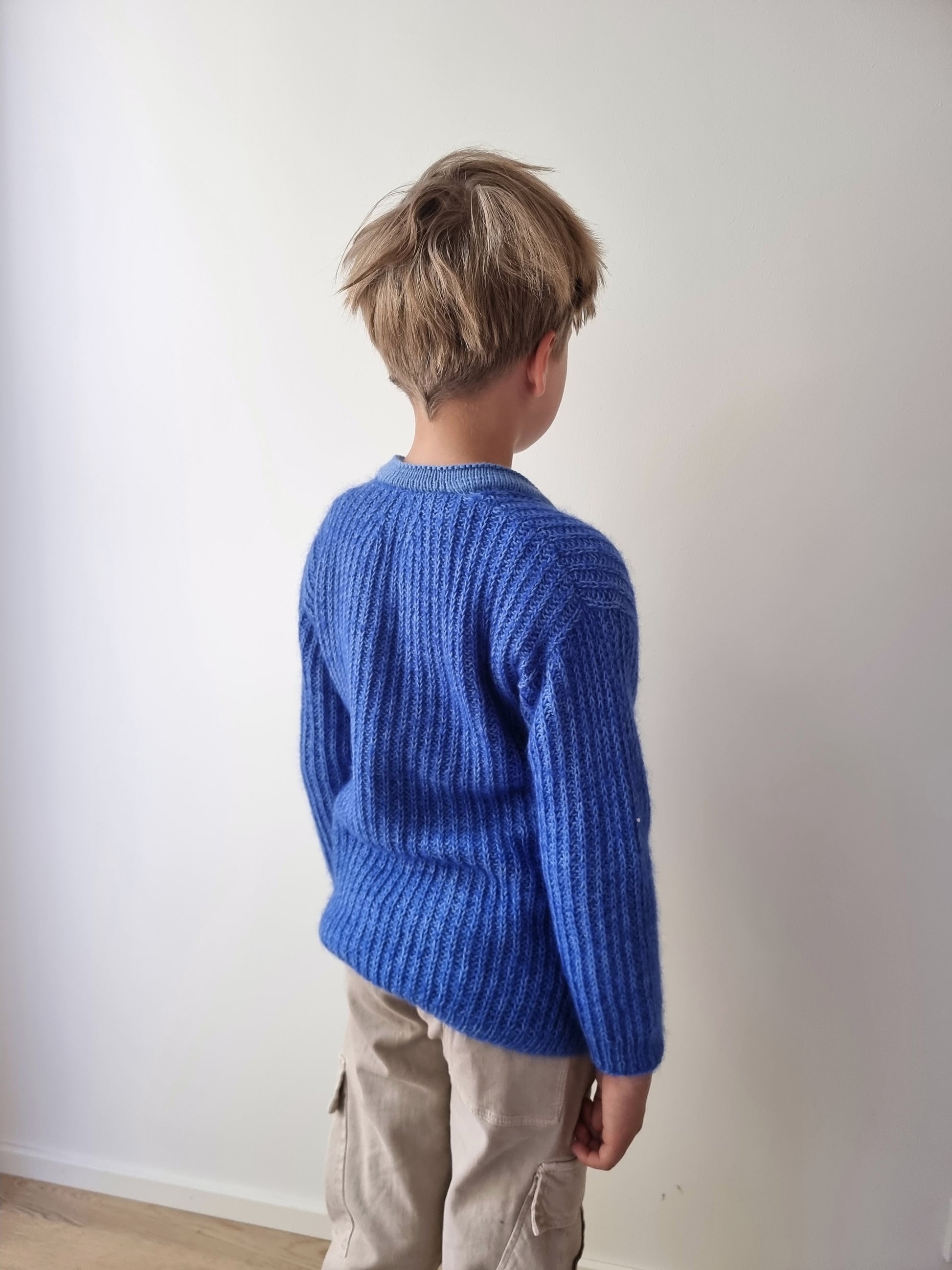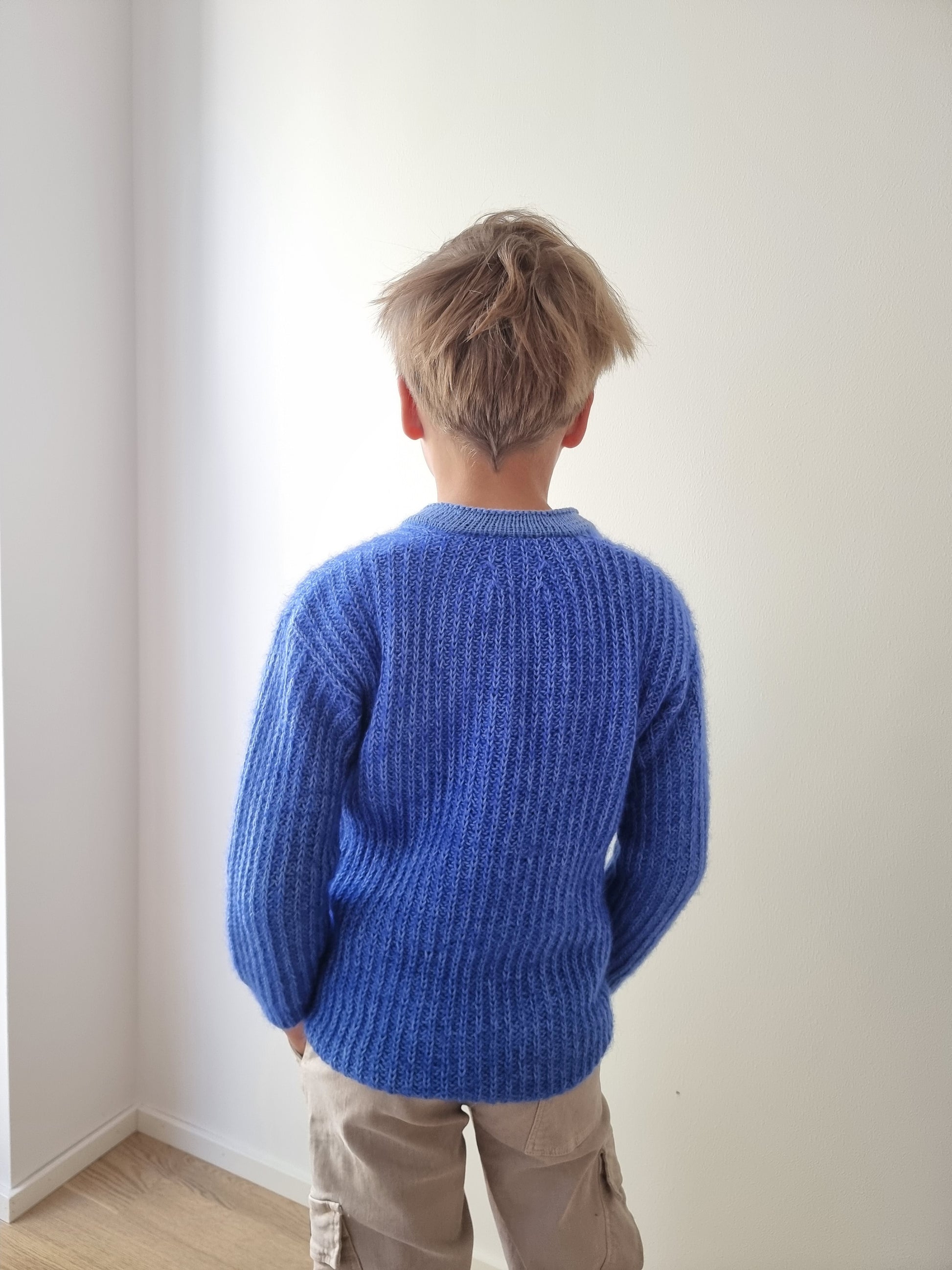 The Pan cardigan is a classic ribbed cardigan with a slightly boxy fit and dropped shoulders. The cardigan is worked in half brioche rib from bottom up. The sleeves are picked up from the body and worked in the round towards the cuffs.