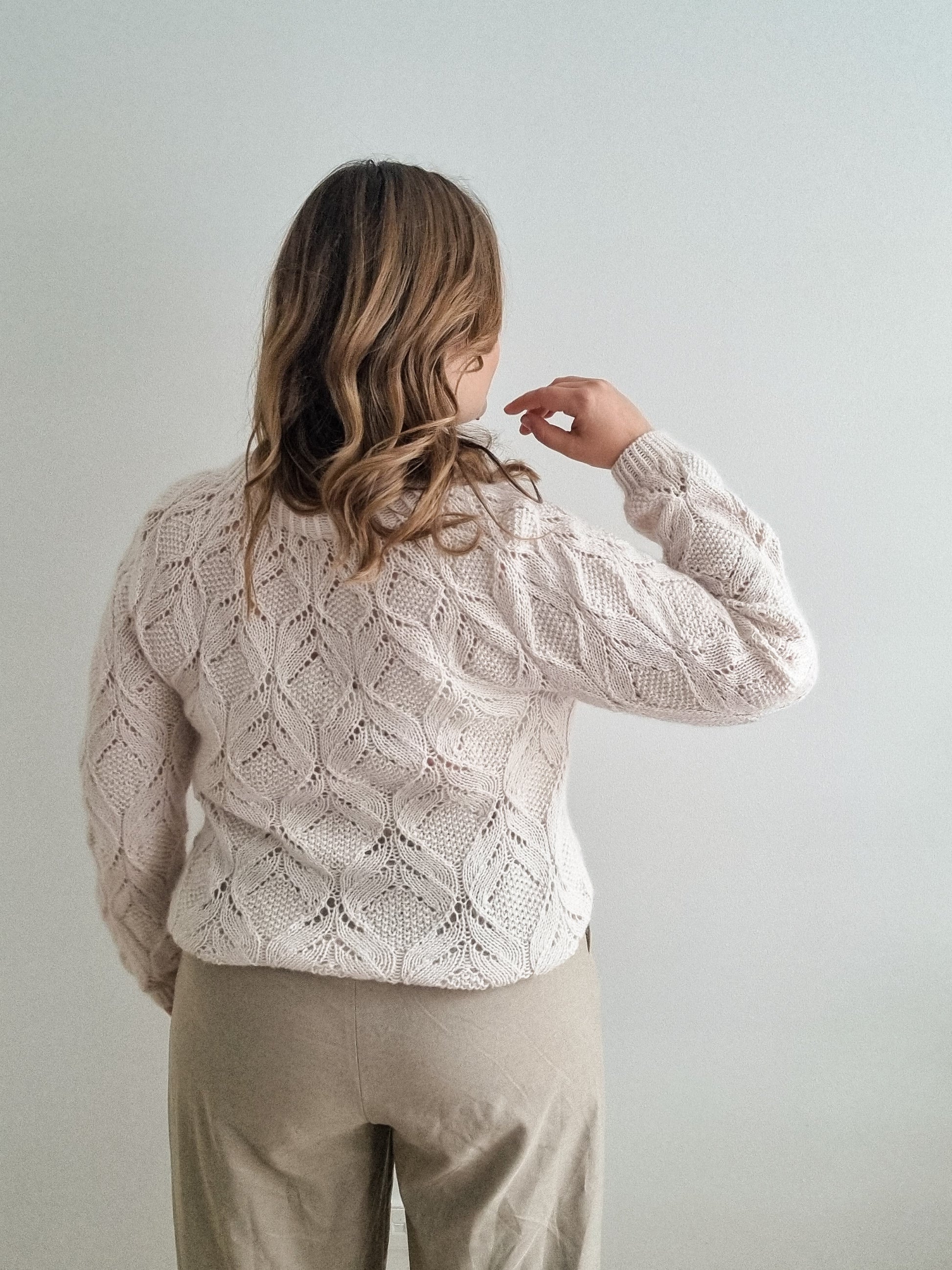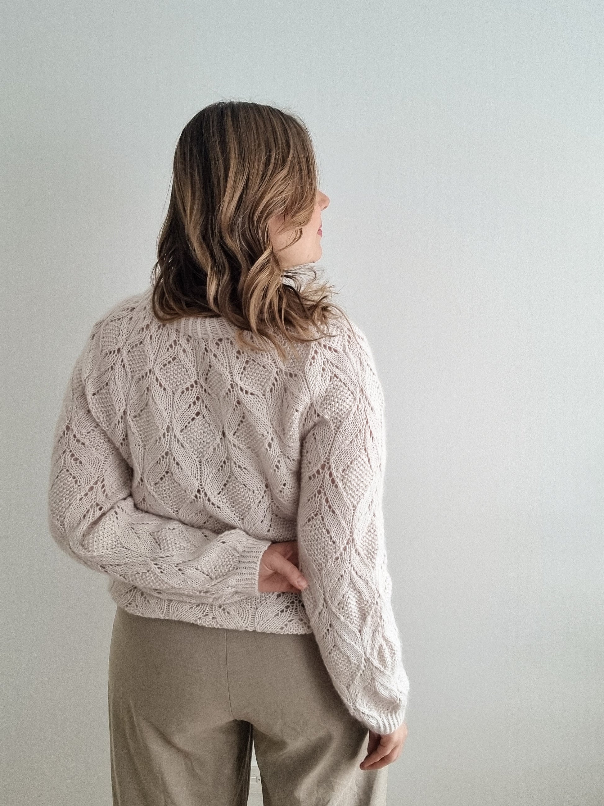 Finished bust circumference: 84 (94.5, 105.5, 116, 126.5, 137, 147.5, 158, 168.5) cm / 33 (37.25, 41.5, 45.75, 49.75, 54, 58, 62.25, 66.25) inches including the intended ease of 9-13.5 cm / 3.5-5.25 inches