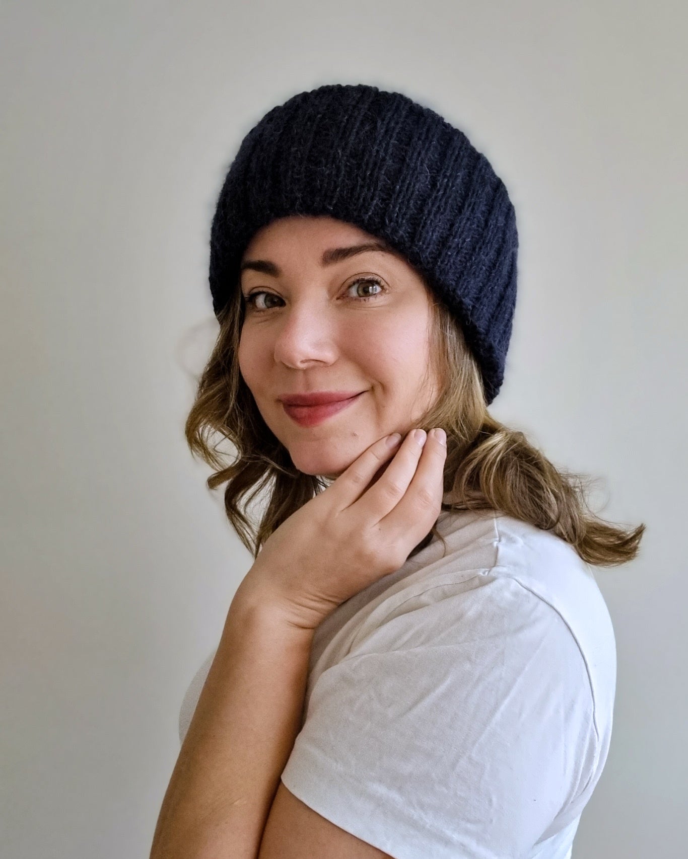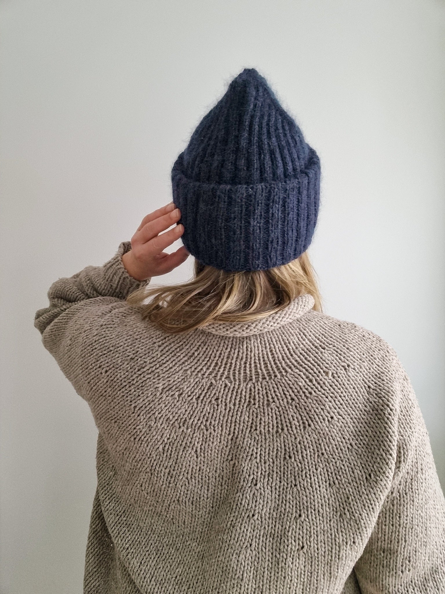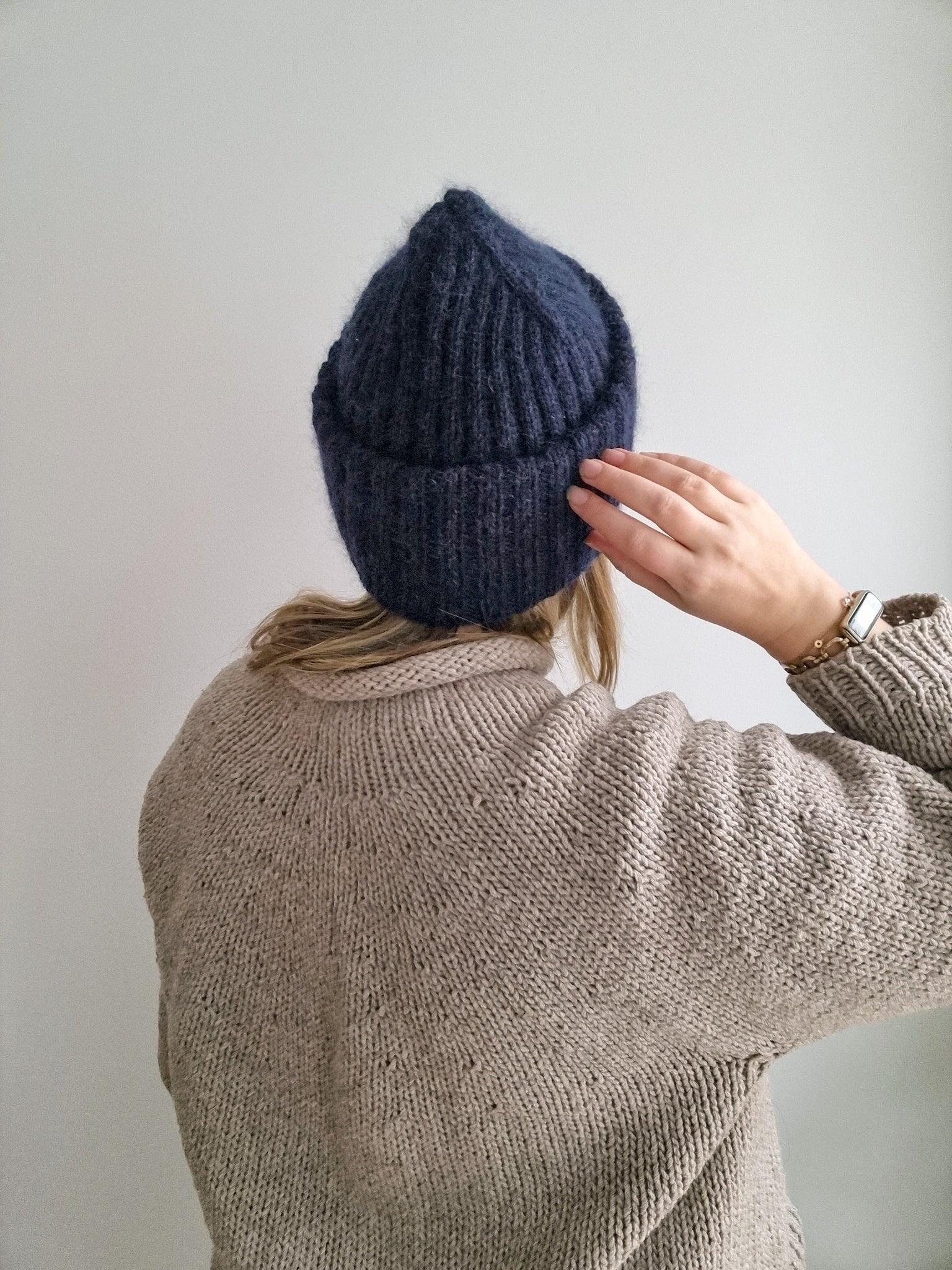 The Sailor beanie is knitted with two strands of yarn and the brim is folded twice for triple thickness around the ears bringing you extra warmth and coziness during the winter months. Combining a strand of silk-mohair knitted together with a DK weight merino yarn makes the hat really soft and gives it a beautiful halo.