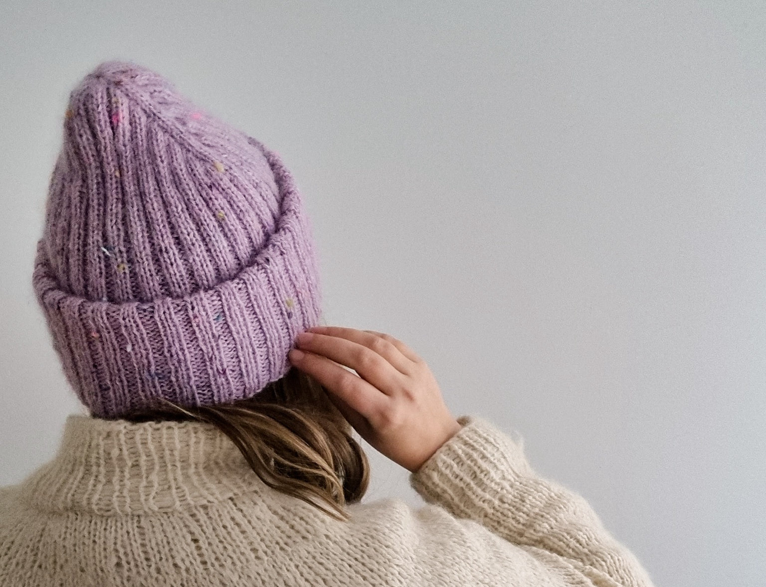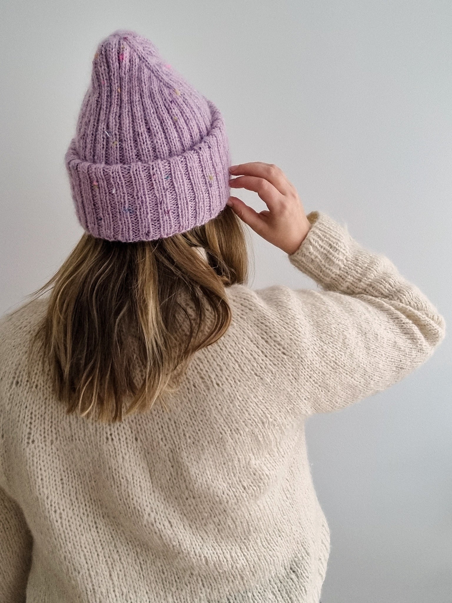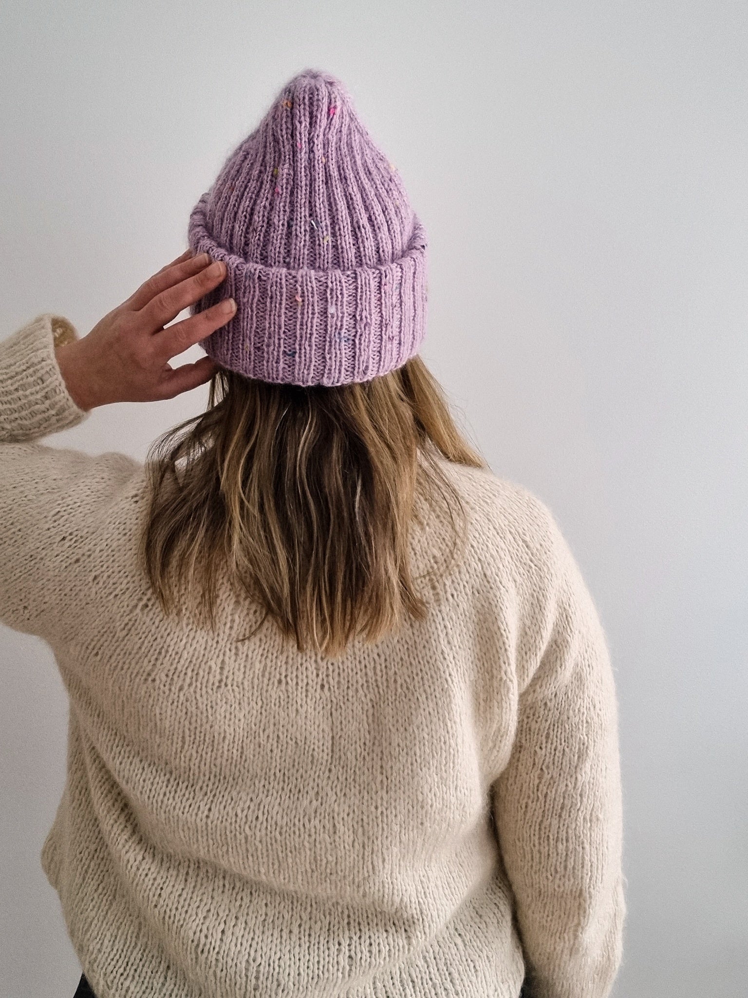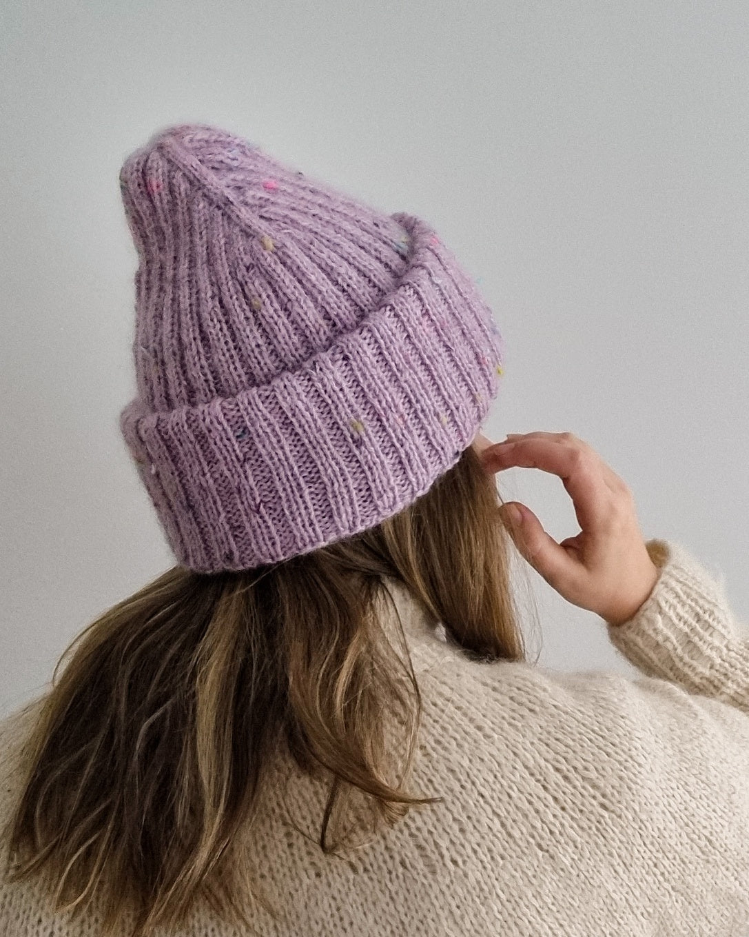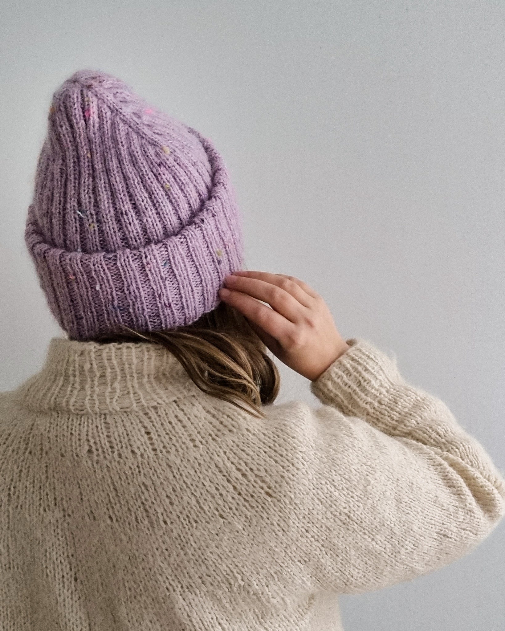 The Sailor beanie is designed for everyday use, and it knits up surprisingly fast. This is the perfect project to use the precious hand dyed skeins from your stash, as the simple texture really highlights the colors and texture of the yarn! You can either go for a muted look by choosing matching solid colorways for both yarns, get a marled look by choosing different colors for the fingering weight yarn and the mohair, or go for extra speckles by picking both yarns in speckled colorways (either the same colorway or both different).