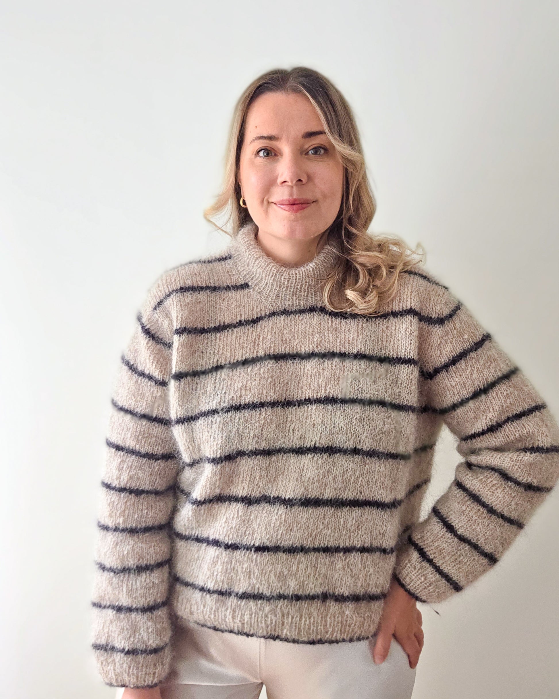 The length of the body and sleeves are easily modified to suit your own body measurements. I recommend trying the pullover on every now and then while working on it to make sure you get the perfect length for your style.