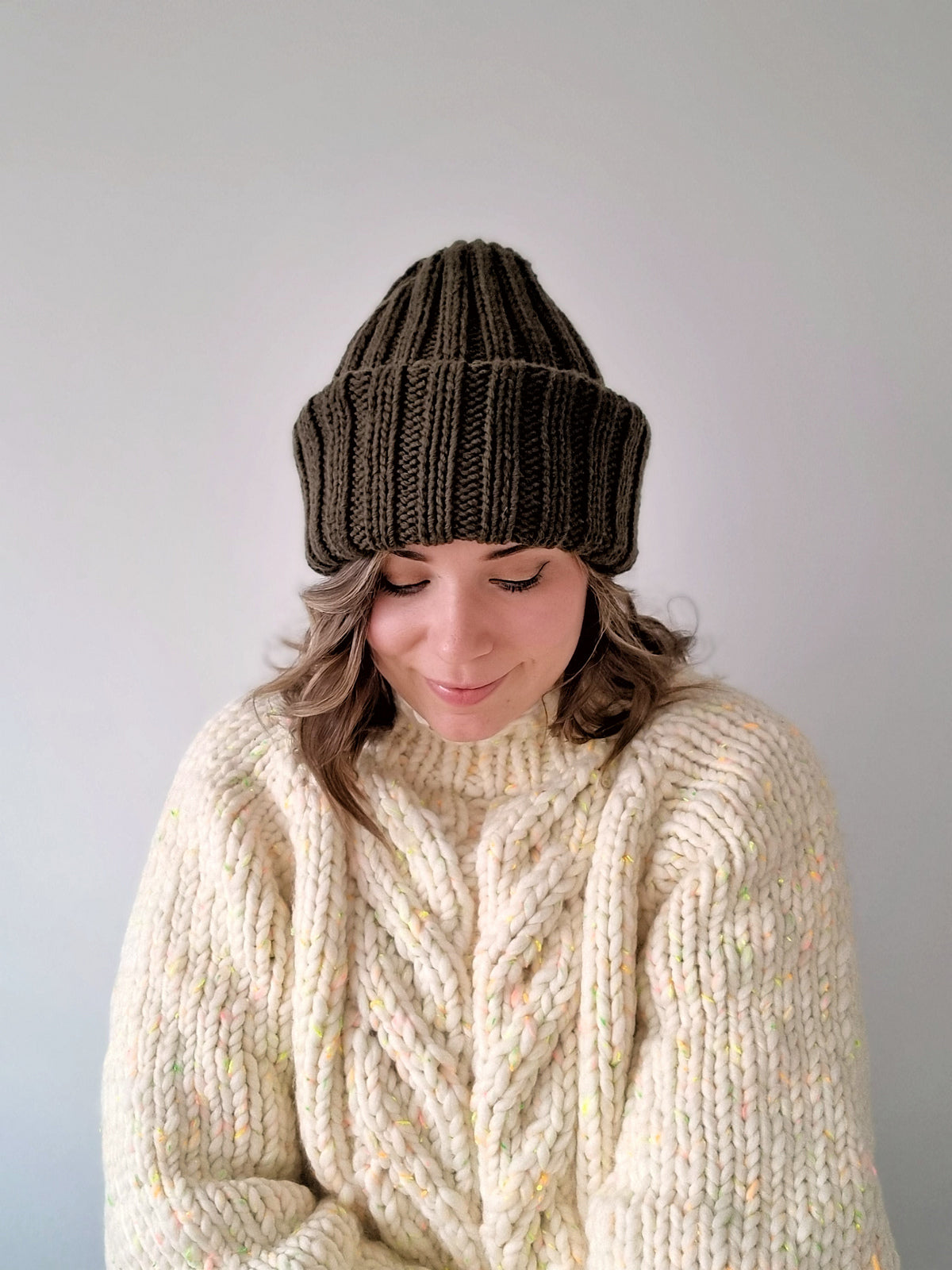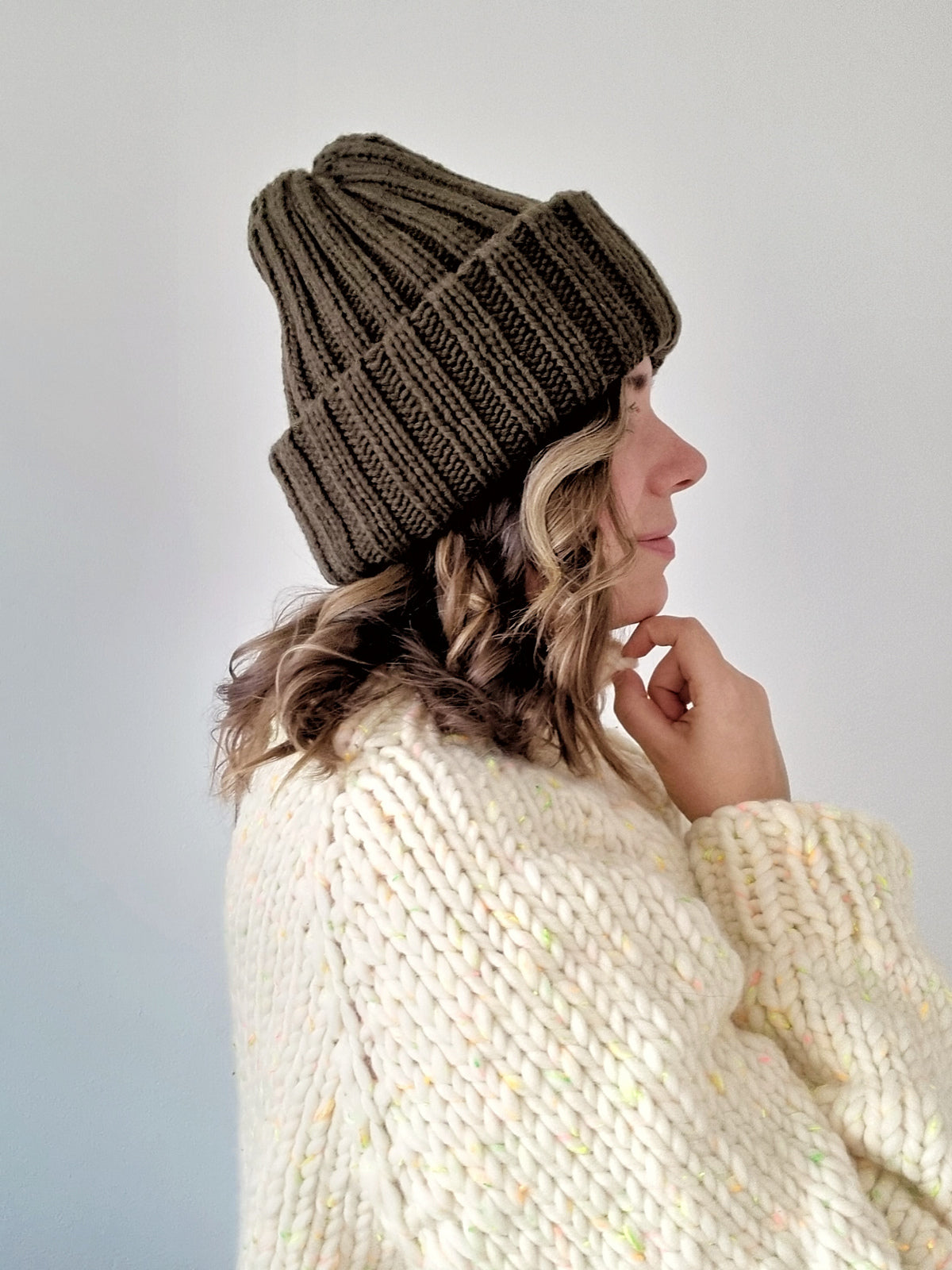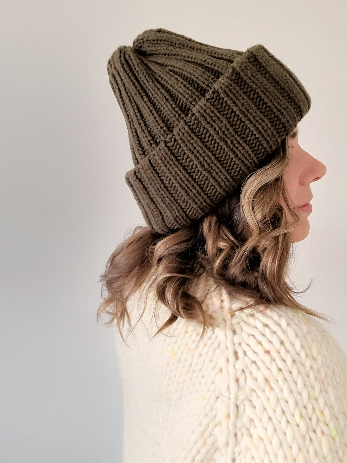 You can easily adjust the length of the hat to get the fit you want. The hat is knitted from top down, so you can try it on as you knit it to make sure the hat is just perfect for your head. After the crown shaping the rest of the hat is just simple 2x2 ribbing.
